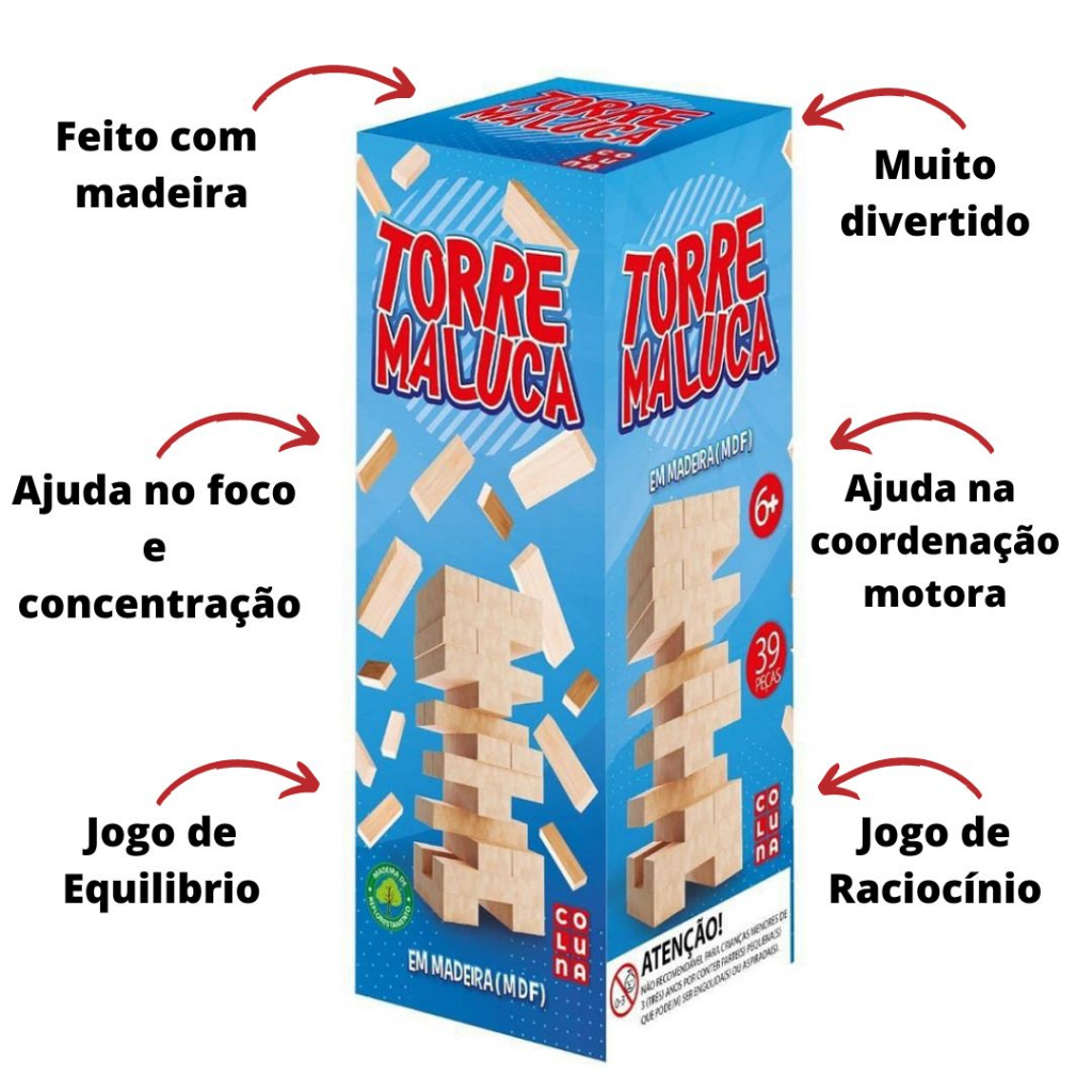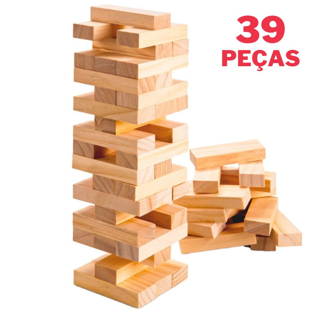 Jogo Caiu Perdeu Pais & Filhos 28x8x8cm Jogo da Torre de Madeira 54 Peças - PAIS&FILHOS