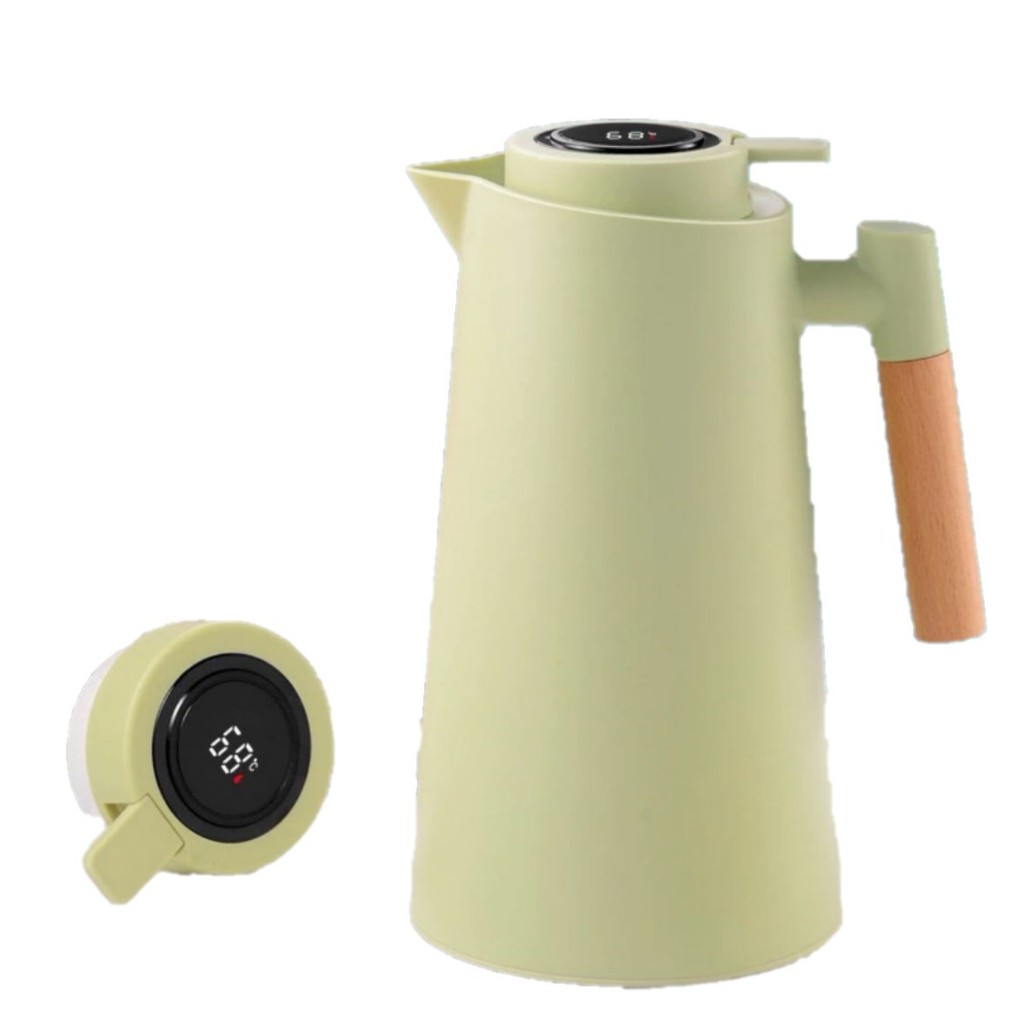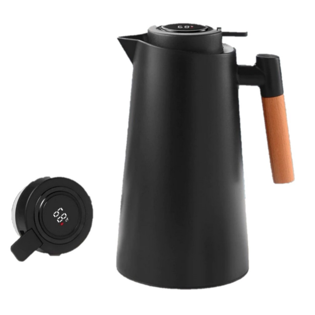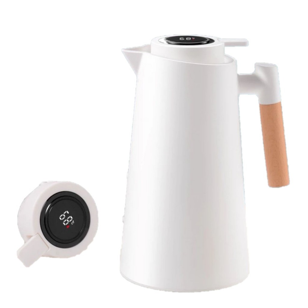 Garrafa Térmica Termometro Digital 1L Café Chá Nórdica Com Cabo Madeira