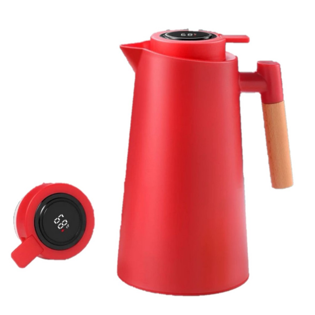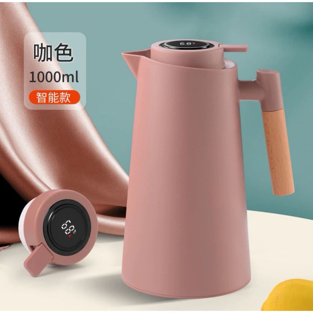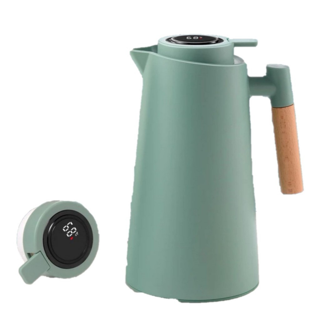 Garrafa Térmica Termometro Digital 1L Café Chá Nórdica Com Cabo Madeira