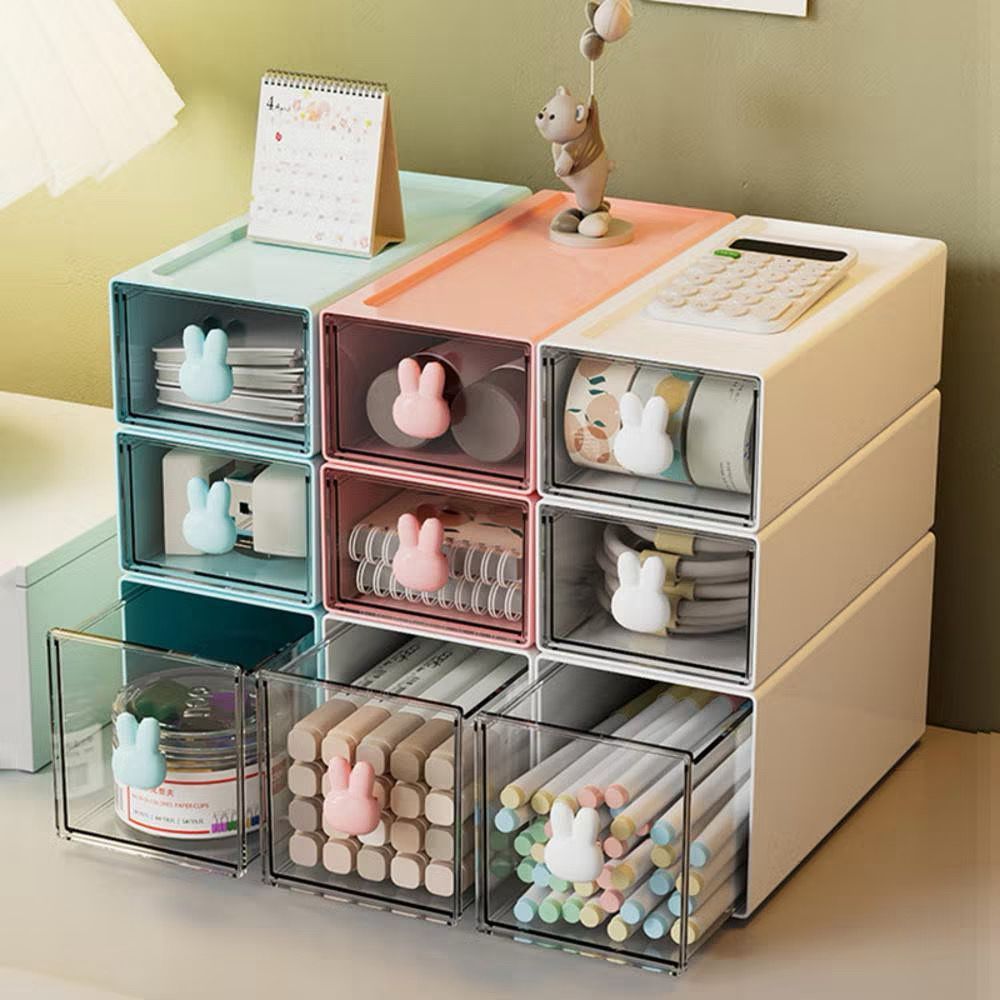 Organizador De Escrivaninha Com Gavetas Caixa De Arrumação Para Coelhos Bonitos Escritório Estacionária , Maquiagem