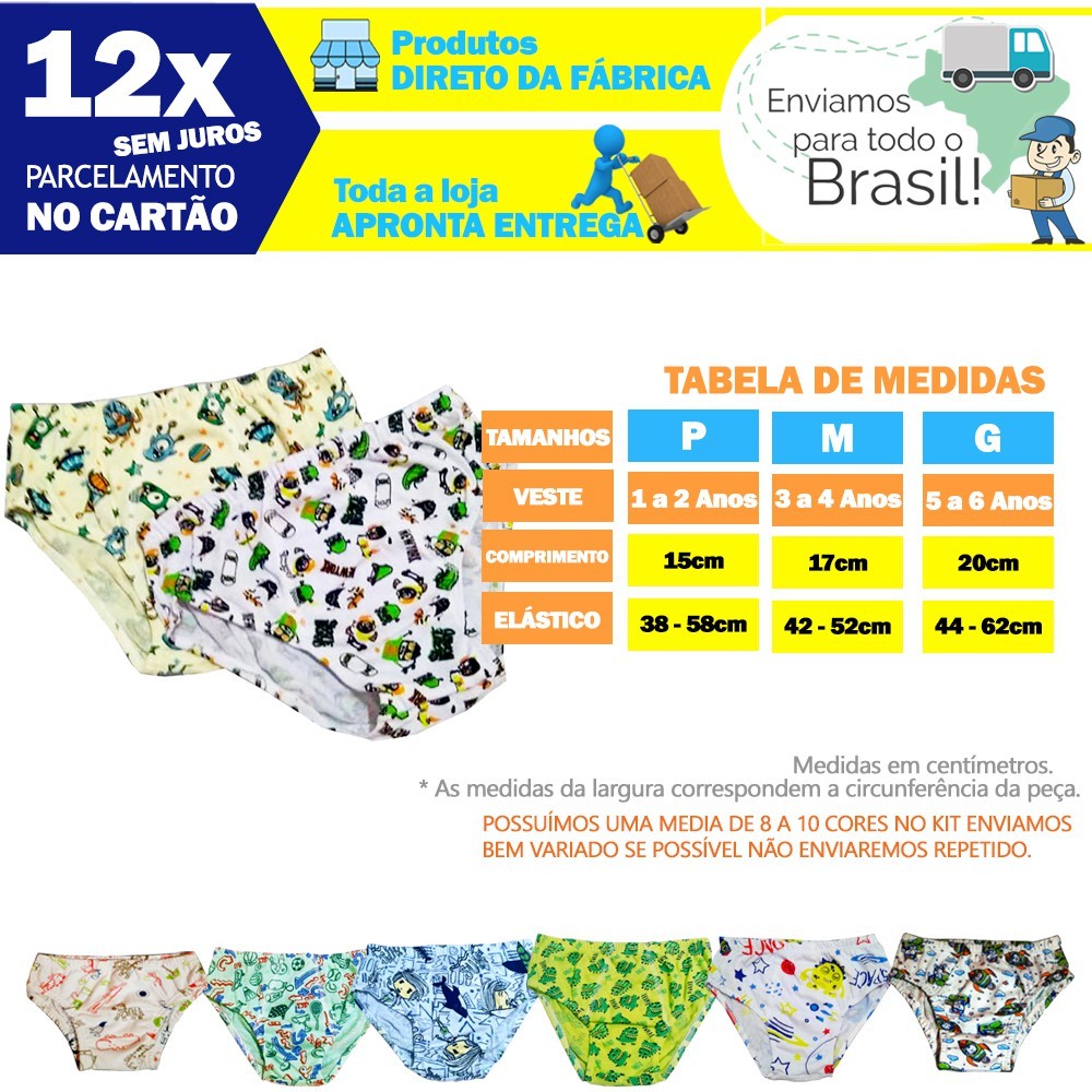 Kit 10 Cuecas Slip Infantil 100%algodão Estampada elástico no cós Revenda