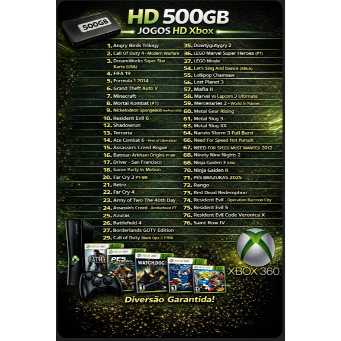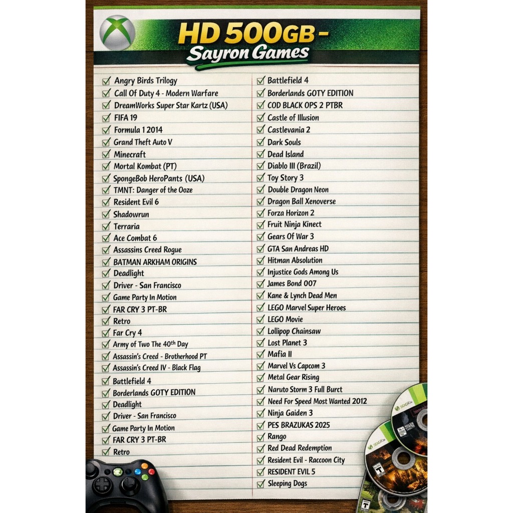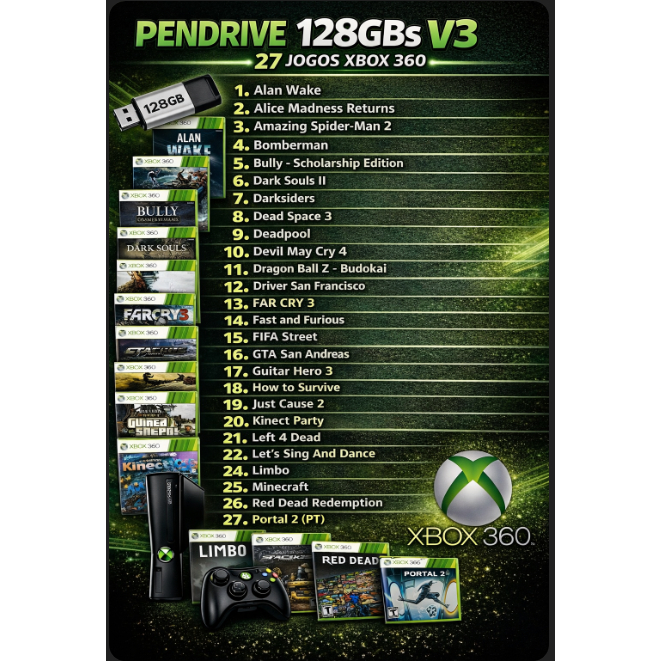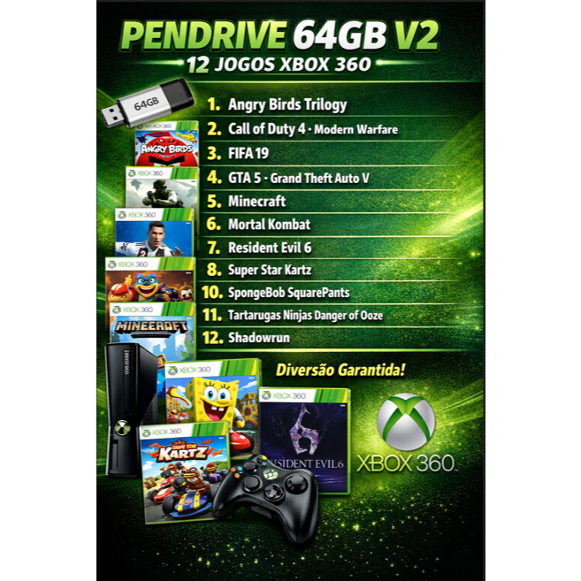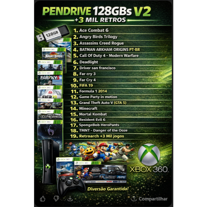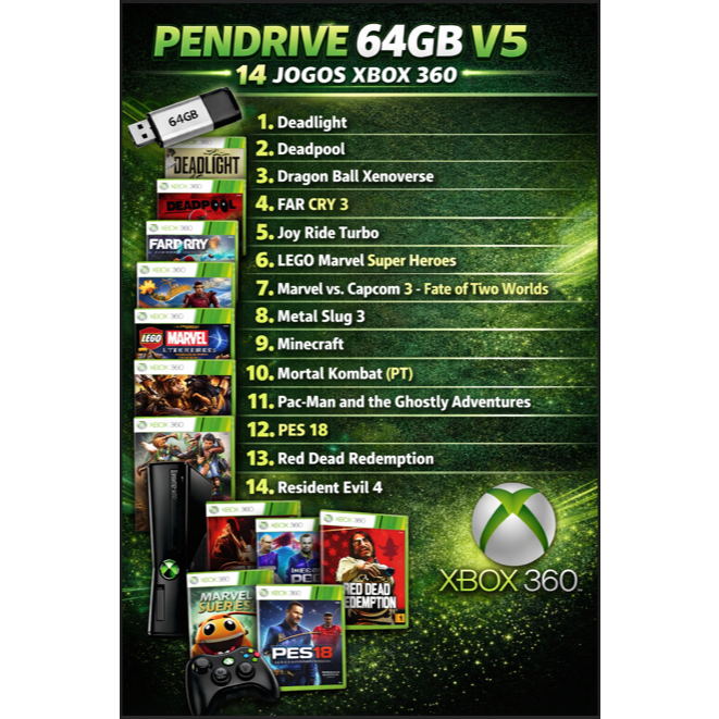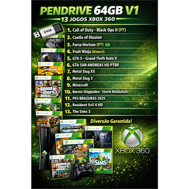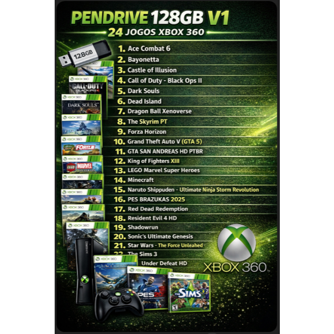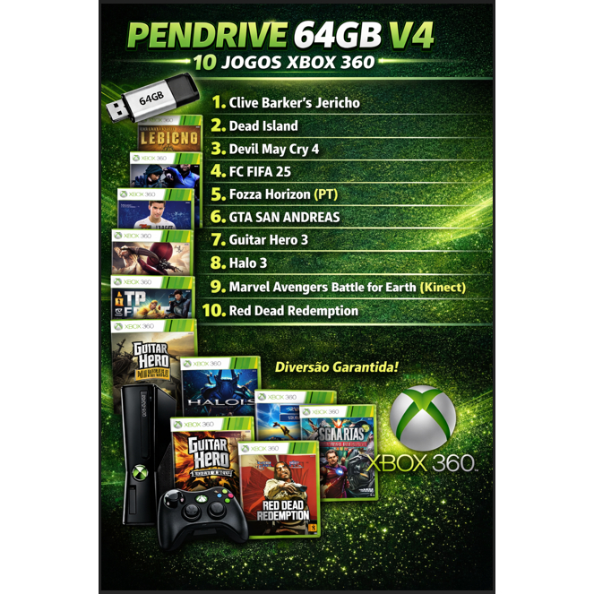Hd/Pendrive 64gb/128gb/HD 500gb de Jogos de Xbox 360 com desbloqueio de todos os modelos!!!