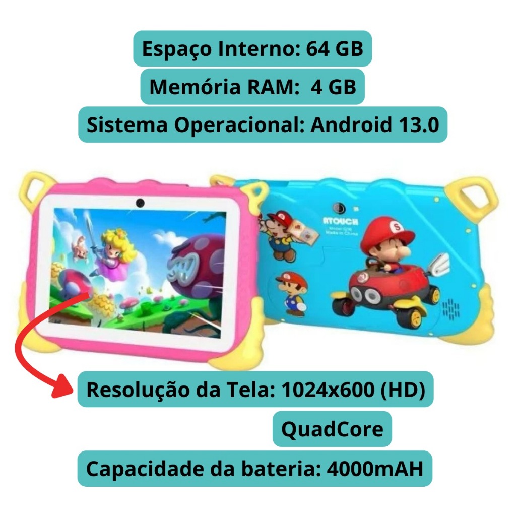 Q39 Tablet Infantil Kids Criança Mario Smart 7 polegadas RAM 8GB + 256 GB Com Wifi Bluetooth 4G 5G