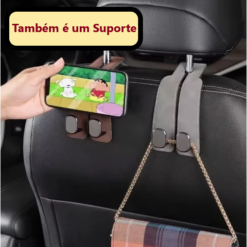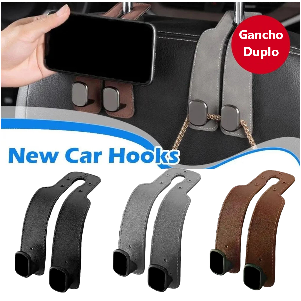 Gancho Universal Para Encosto De Cabeça De Assento De Carro-Duplo Couro Premium , Cabide De Liga Grande Com Suporte