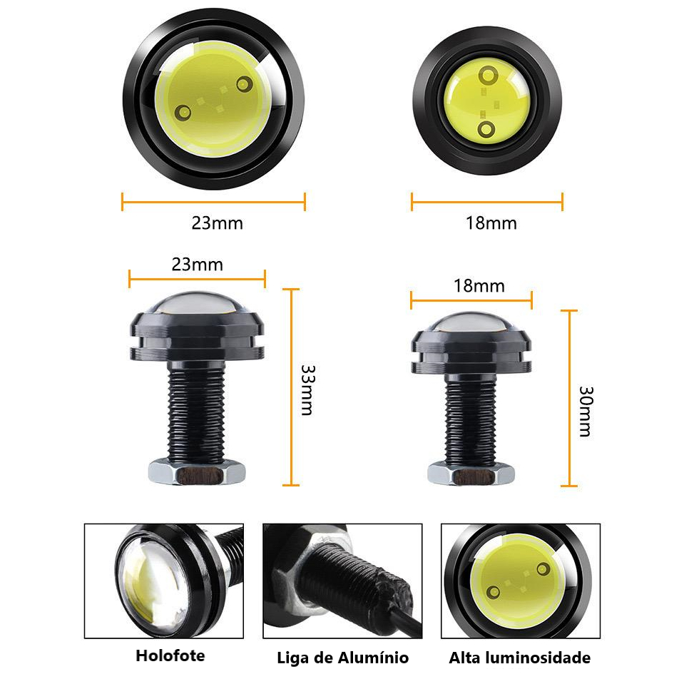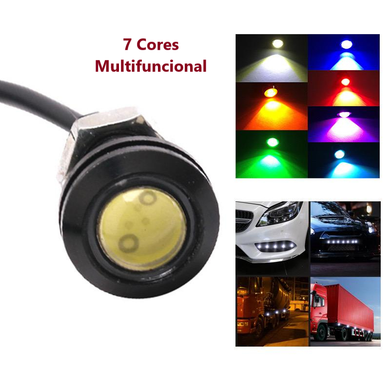 Farol Auxiliar de LED Olho de Águia 18/23 mm Estacionamento Alerta Multicolor Carro Motocicleta