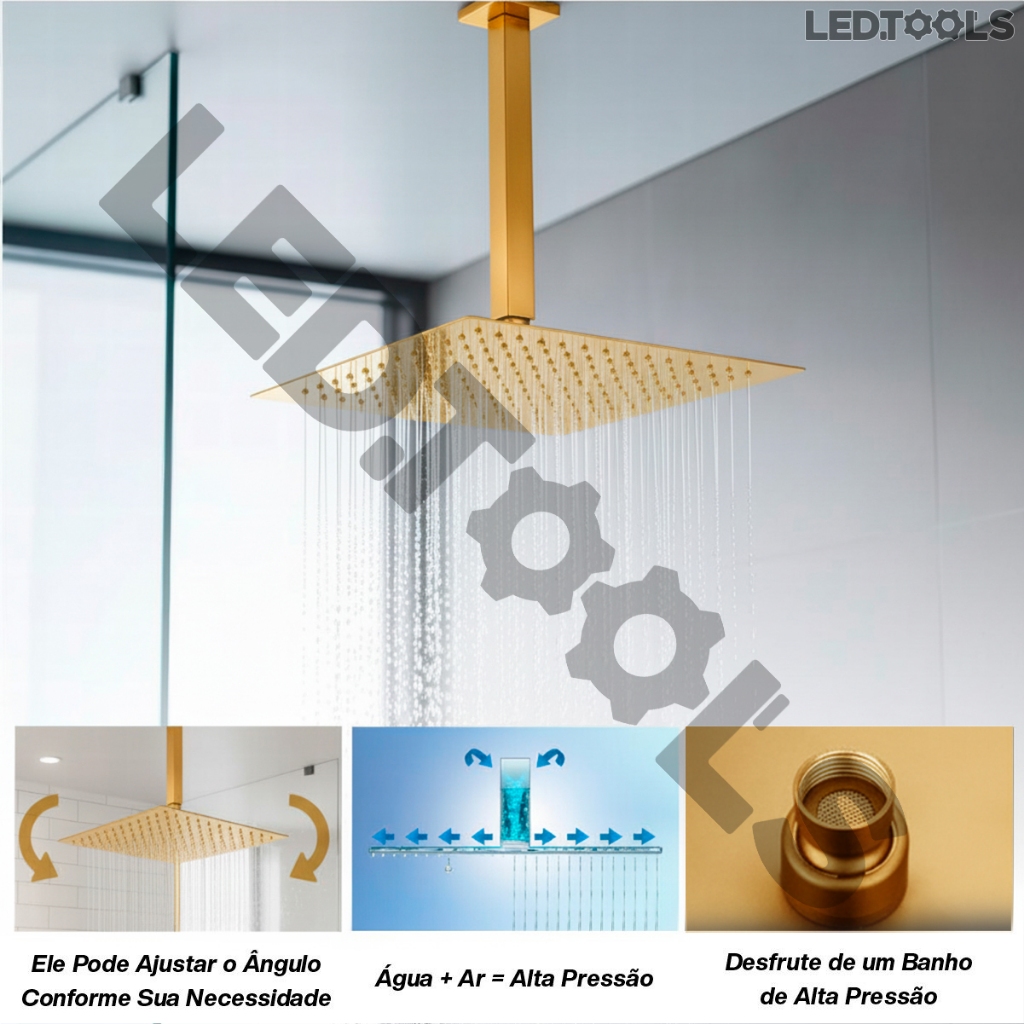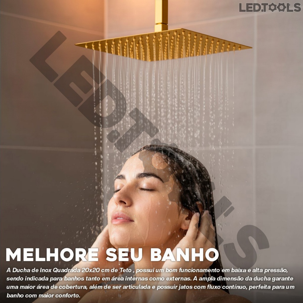 Ducha Chuveiro De Teto Dourado 20x20 Slim Super Luxo Gold Design Sofisticado