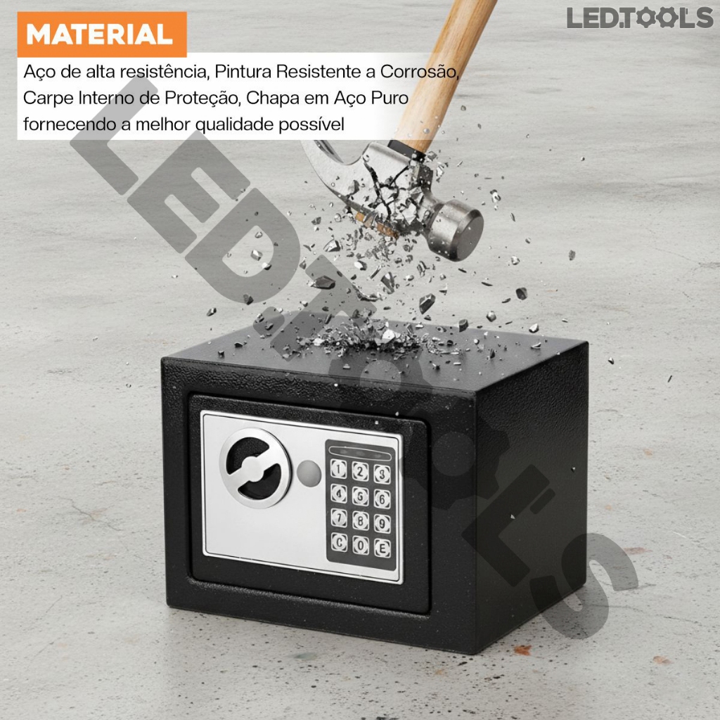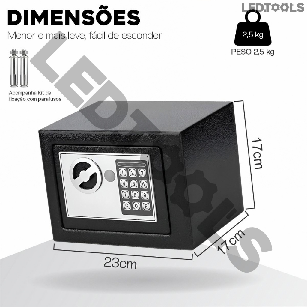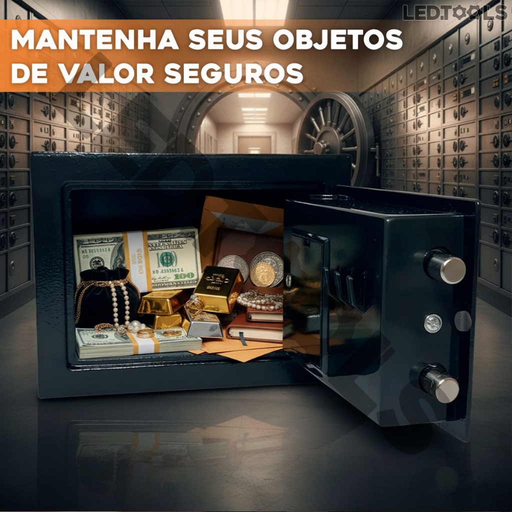 Cofre Eletrônico Digital Em Aço Com Combinação eletrônica + 2 Chaves - Preto