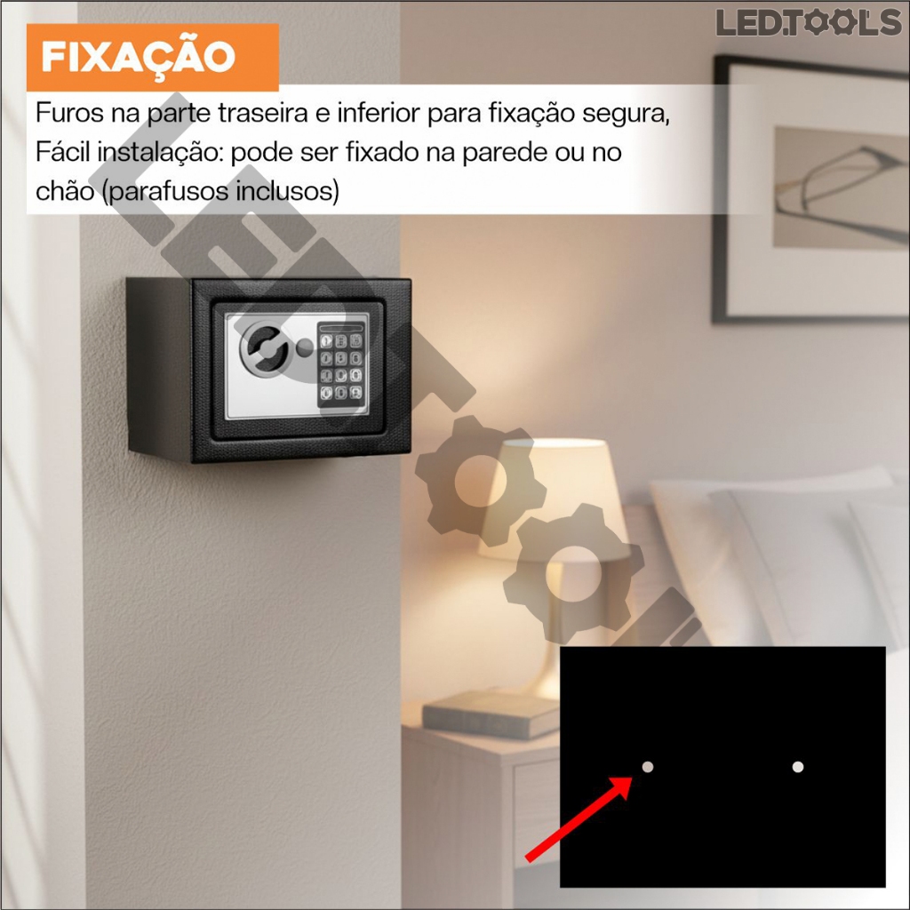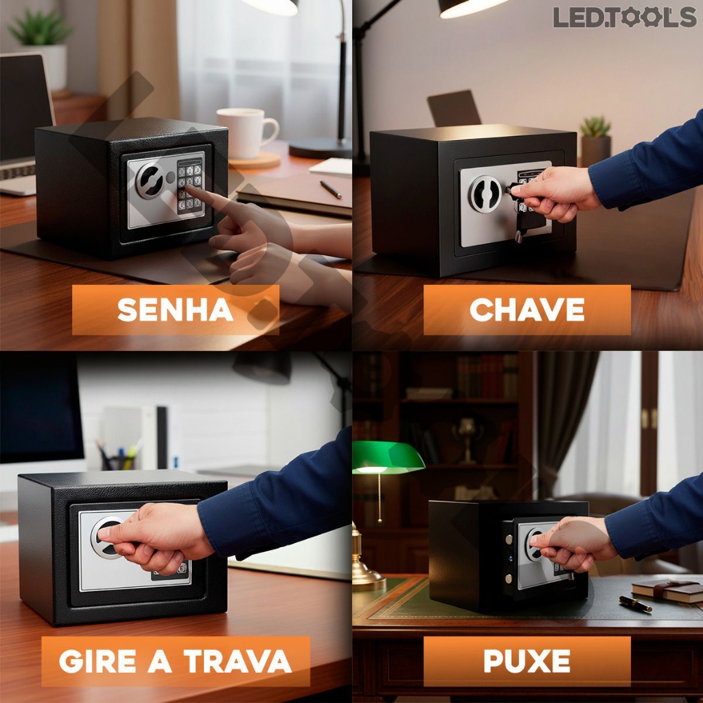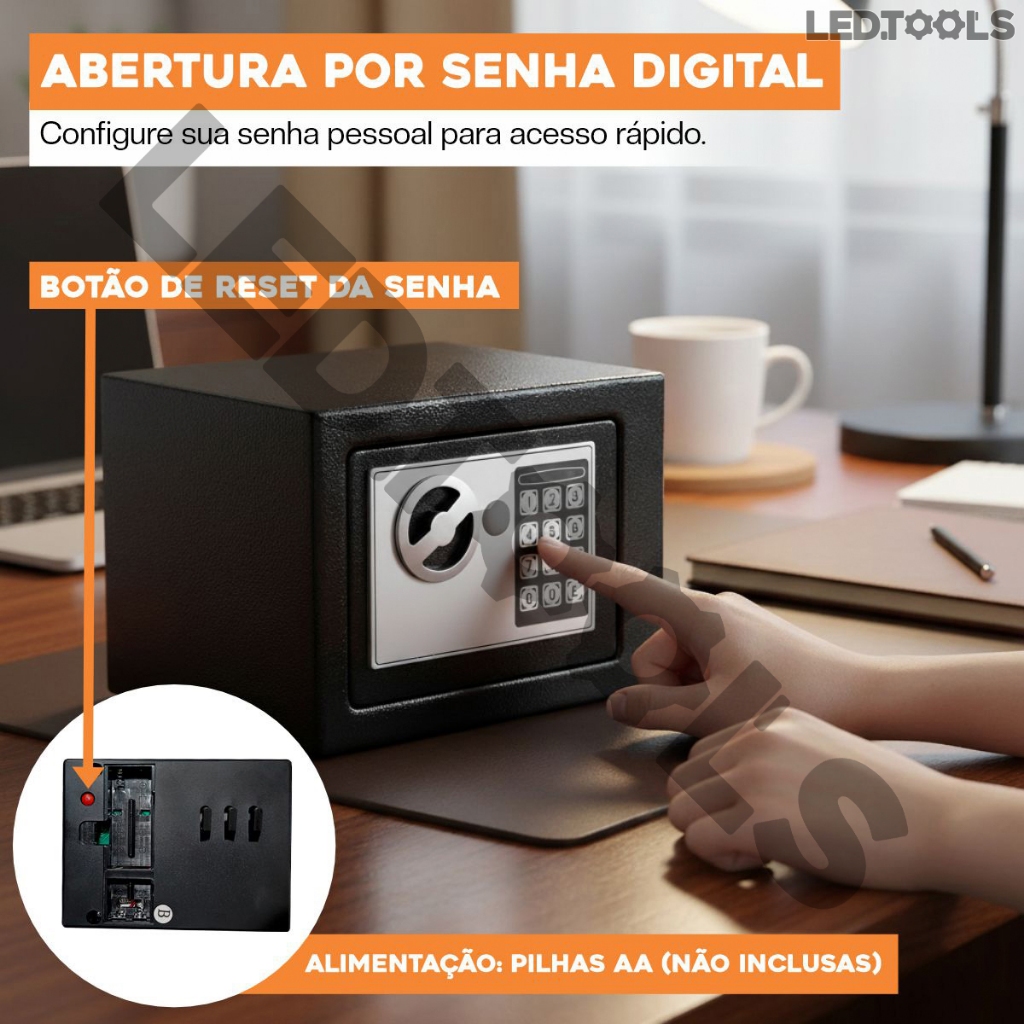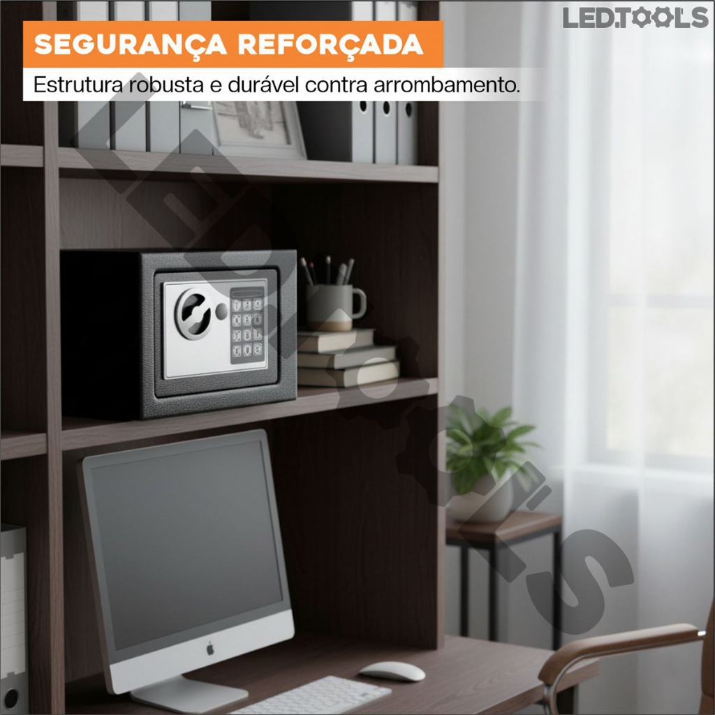 Cofre Eletrônico Digital Em Aço Com Combinação eletrônica + 2 Chaves - Preto