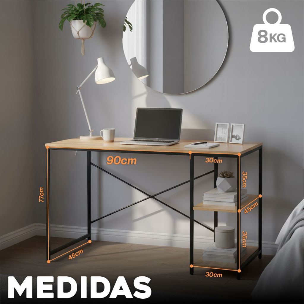 Mesa Escrivaninha Home Office Industrial com 120cm 2 Prateleiras lateral