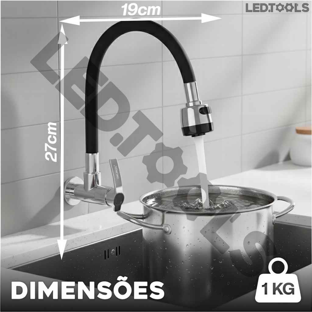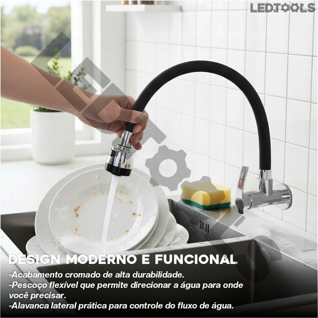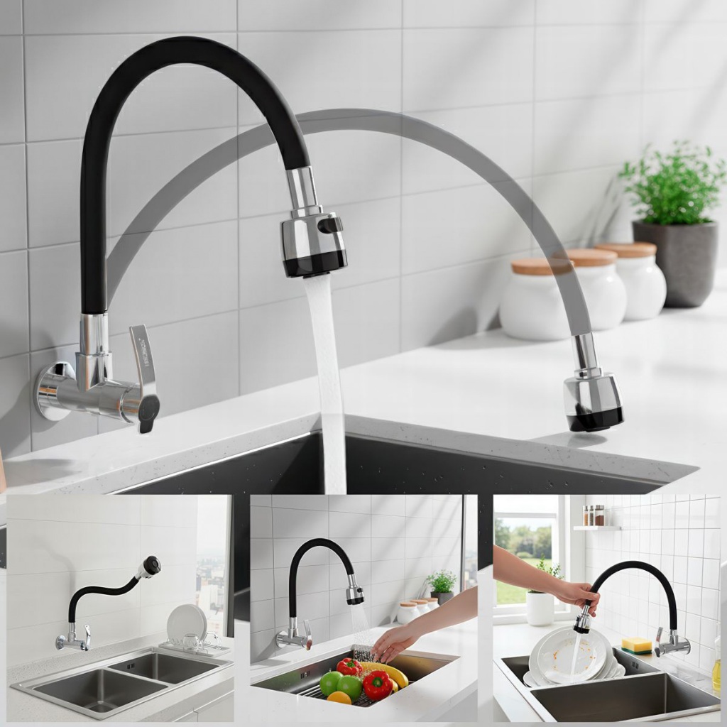 Torneira Cozinha De Parede Flexivel Com Arejador 2 Modos De Jato