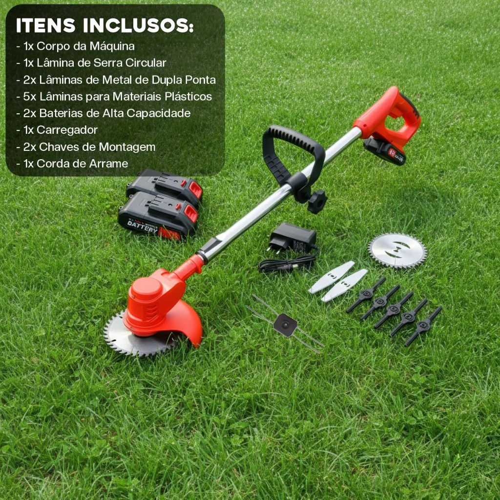 Aparador Roçadeira Elétrica De Grama Nakasaki A Bateria 48V 1580w Corte de Grama e Mato