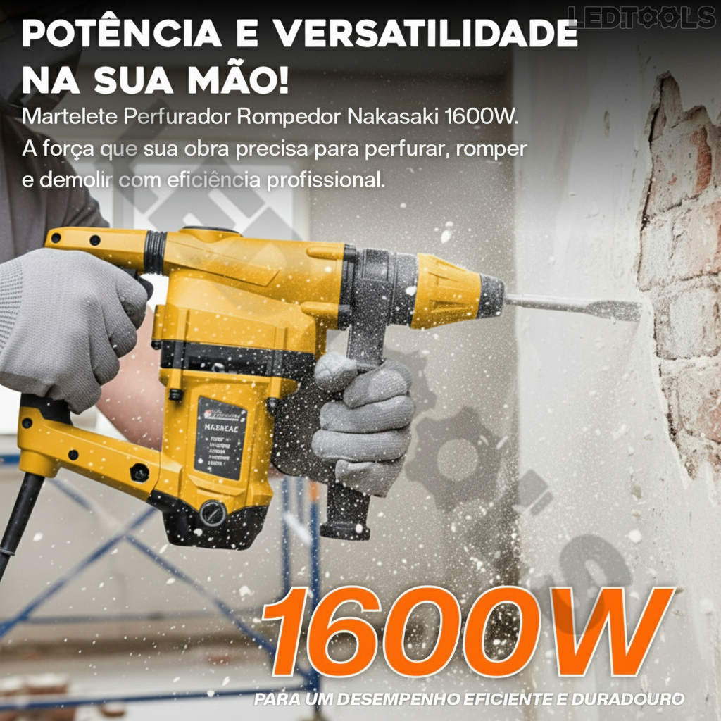 Martelete Perfurador e Rompedor Profissional 1600W 5,6 kg SDS Plus Com Kit e Maleta