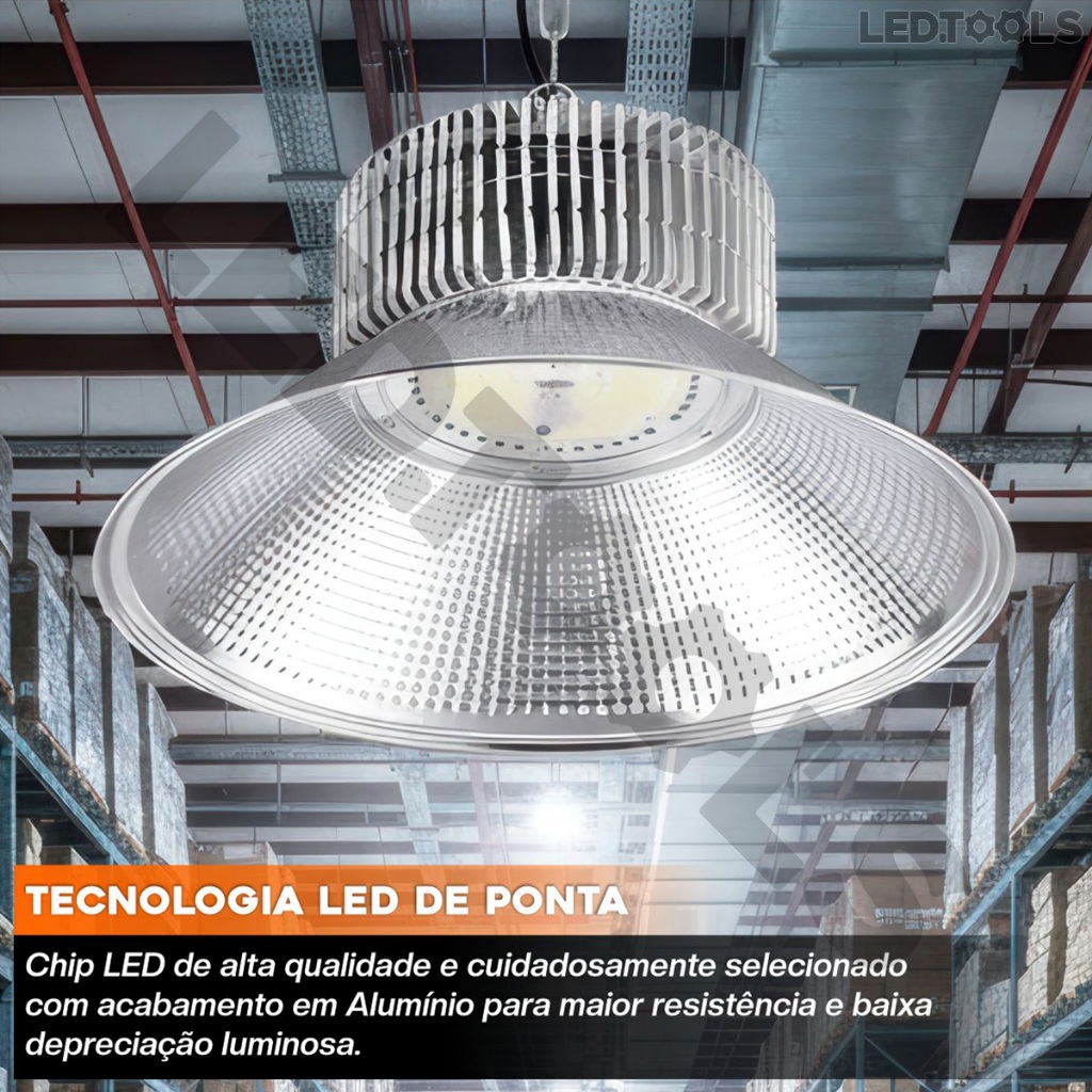 Luminaria Refletor High Bay Led 200w Iluminação Galpões Alta Potência