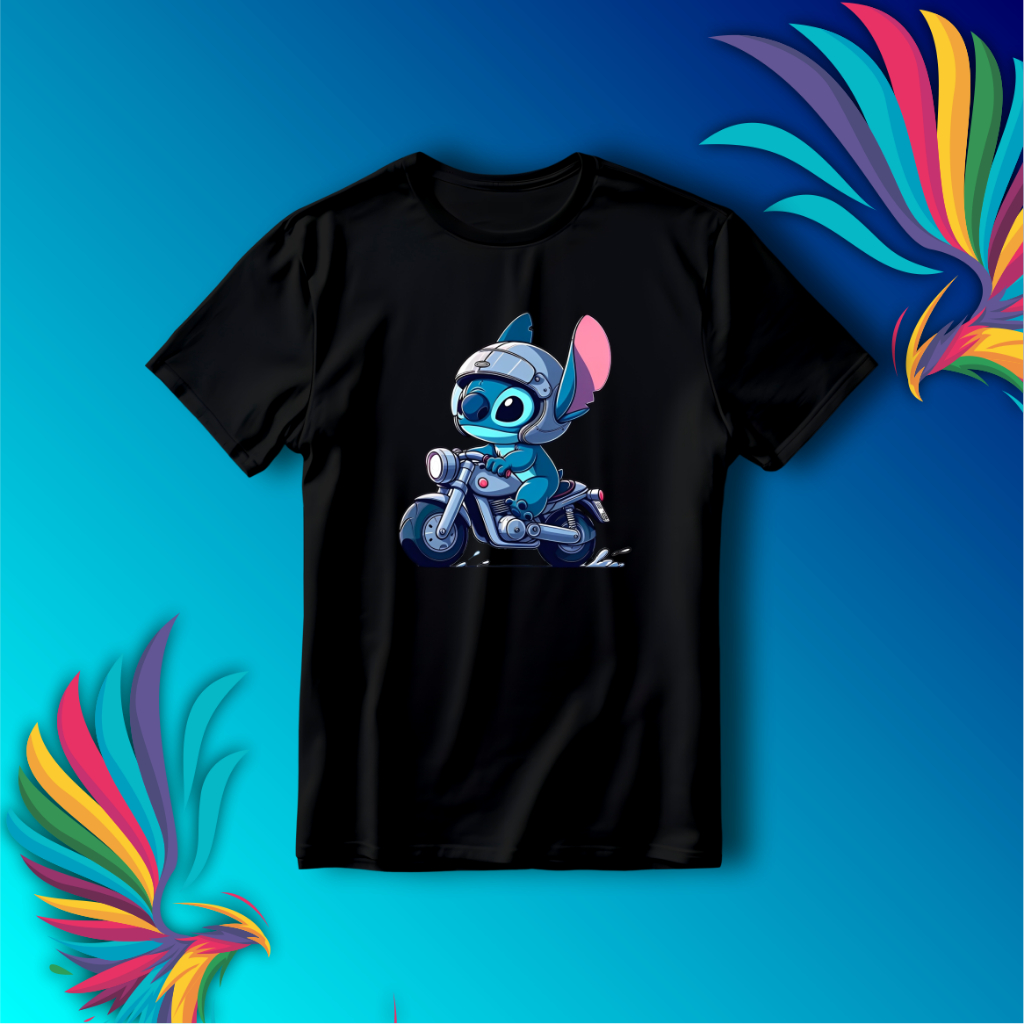Camisa Camiseta de Poliéster com Estampa do Stitch