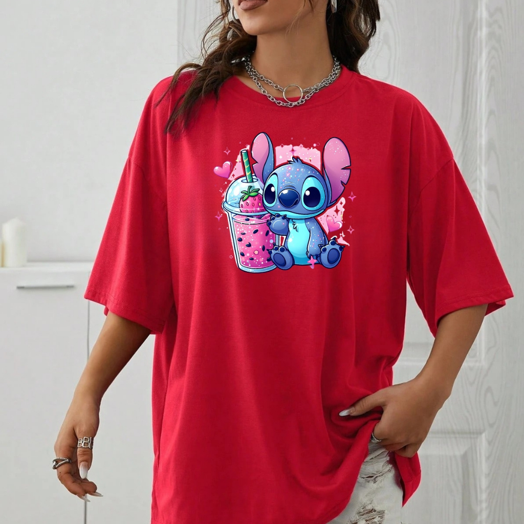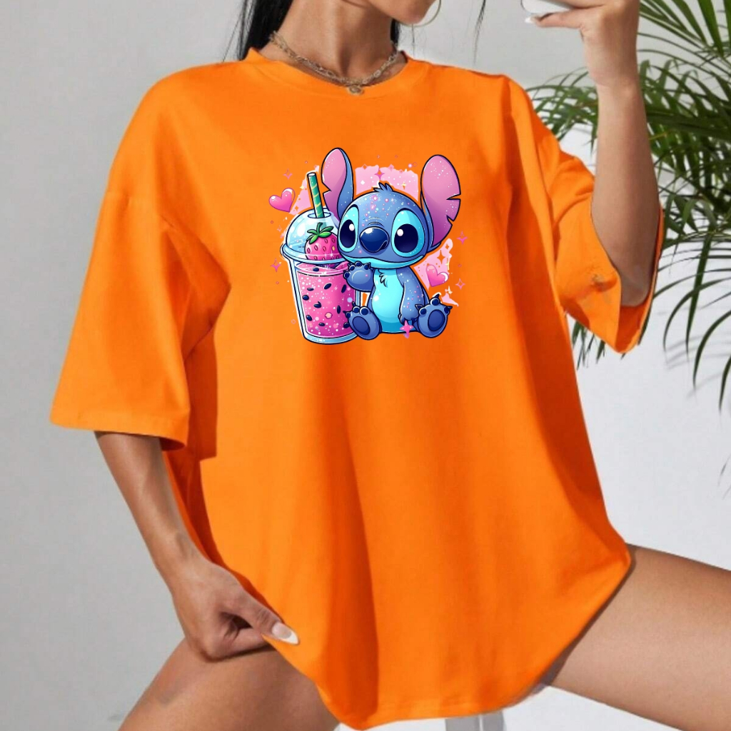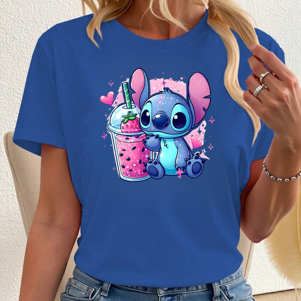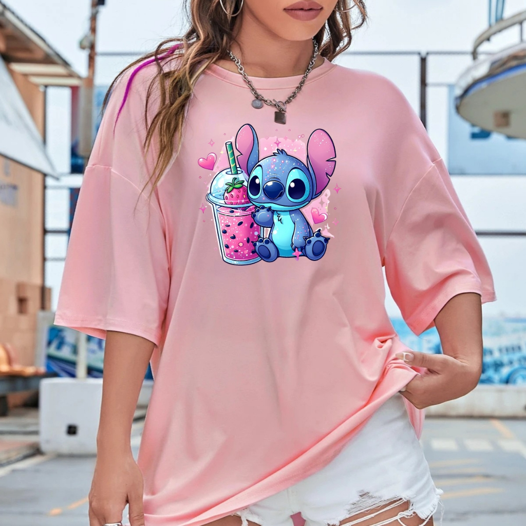 Camiseta Personalizada Desenho Stitch Fofinho Tomando Milk Shake 100% Algodão Unissex