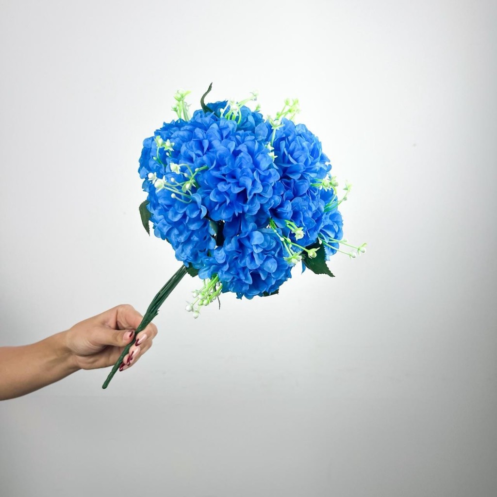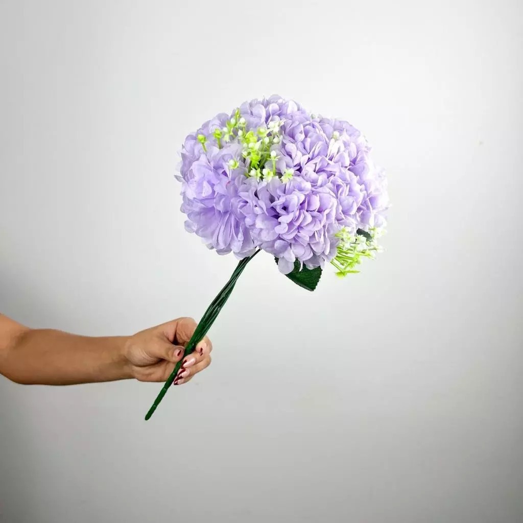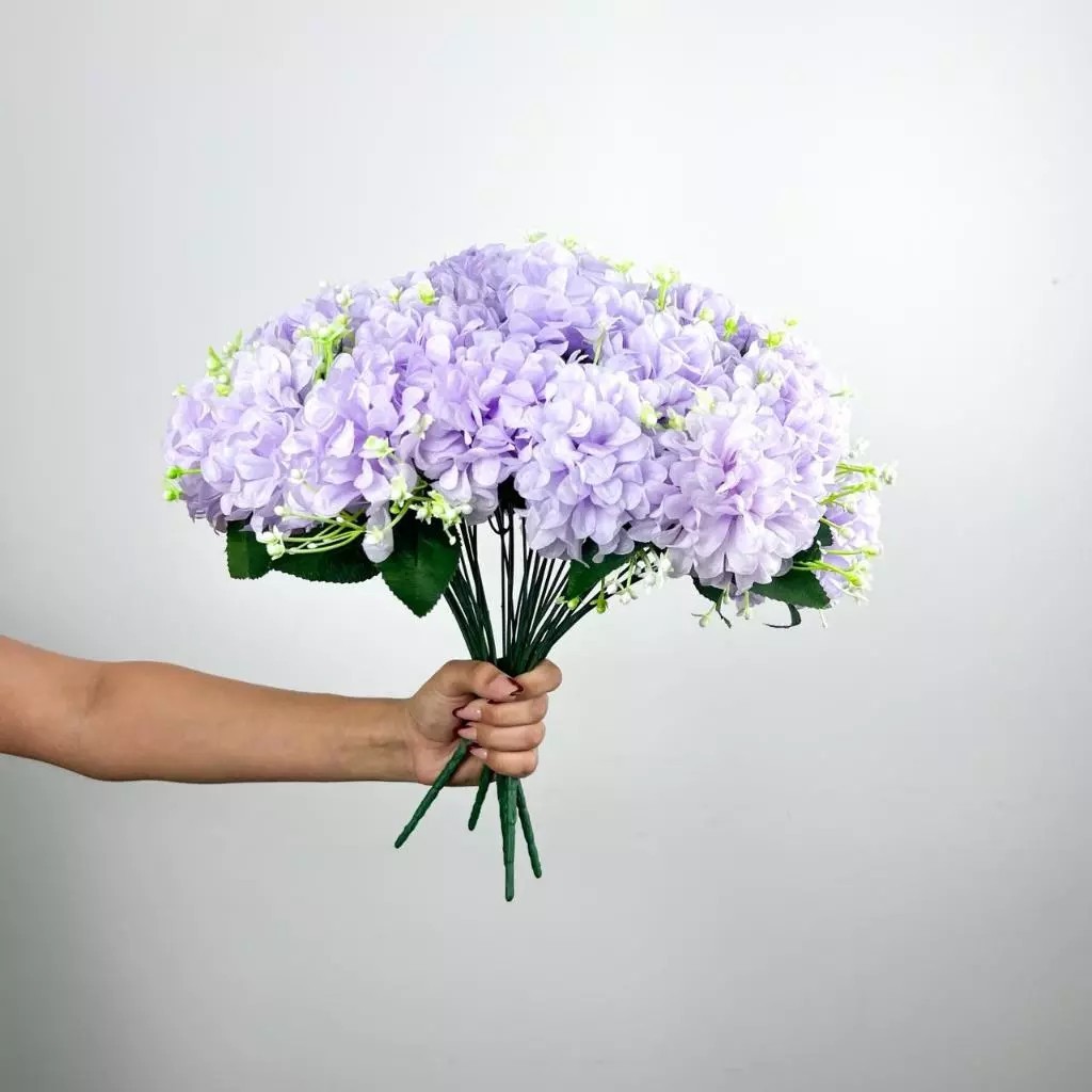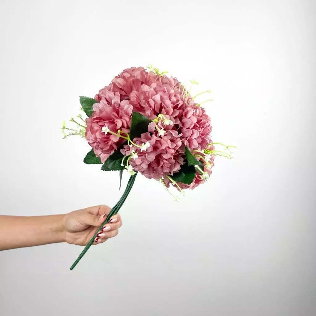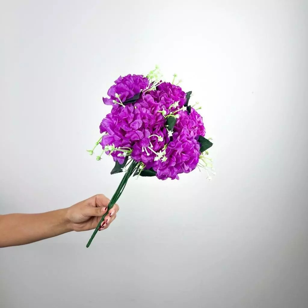 Buquê de hortênsia Pompom grande artificial com 9 flores - BY800578