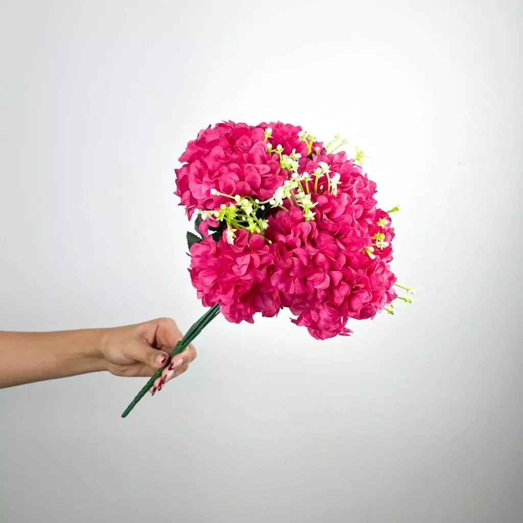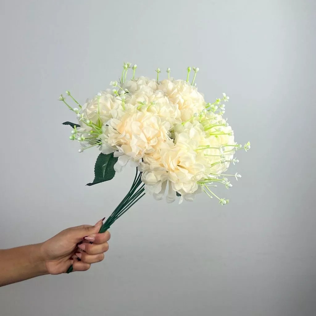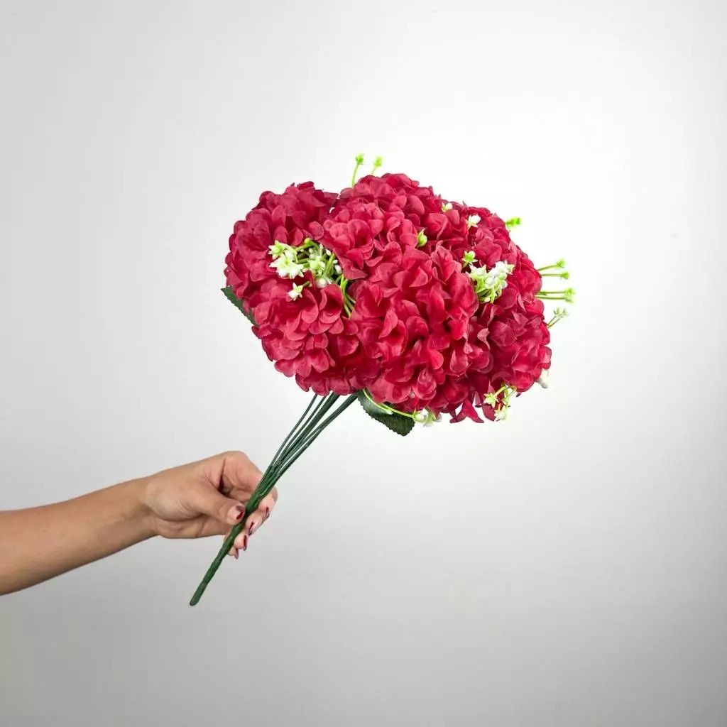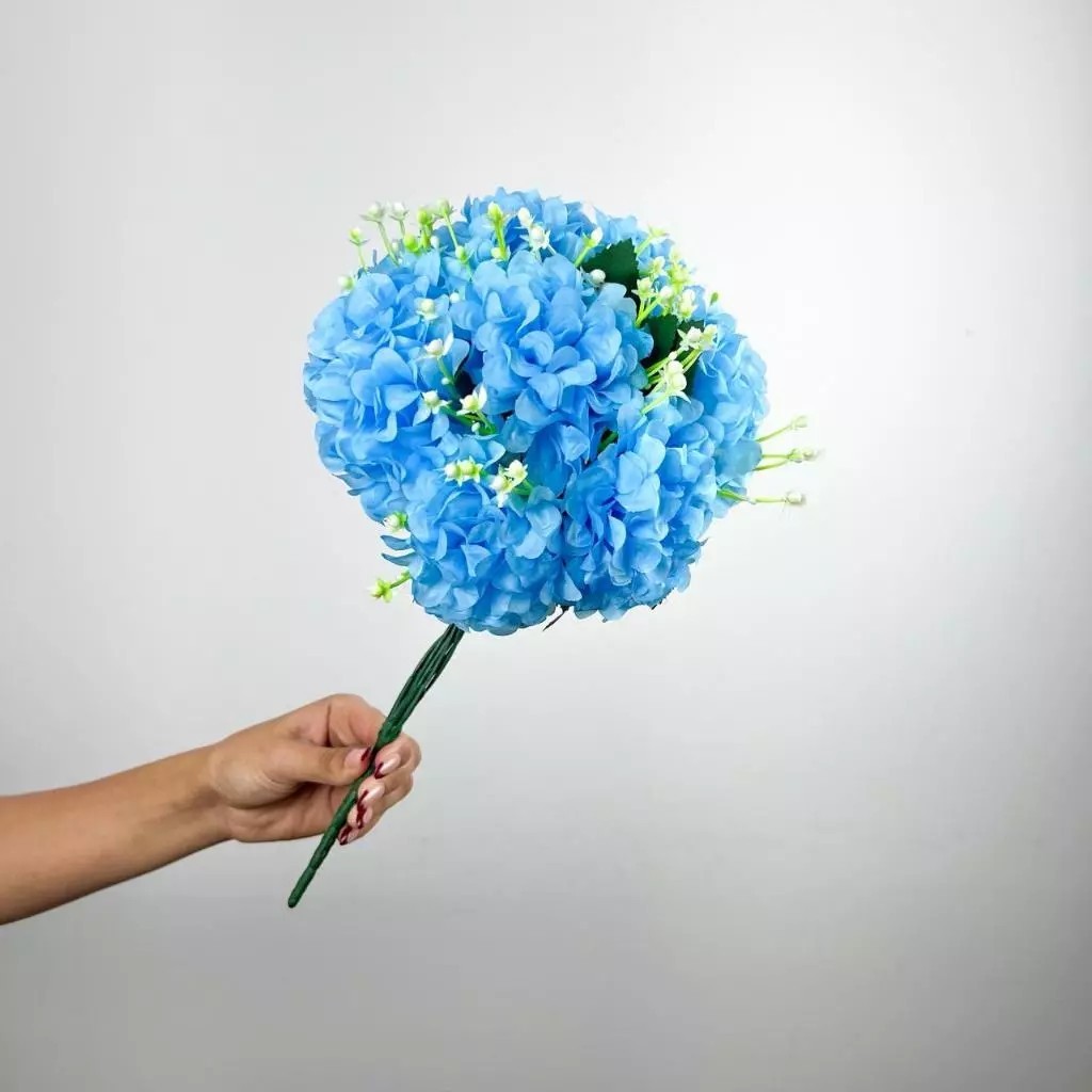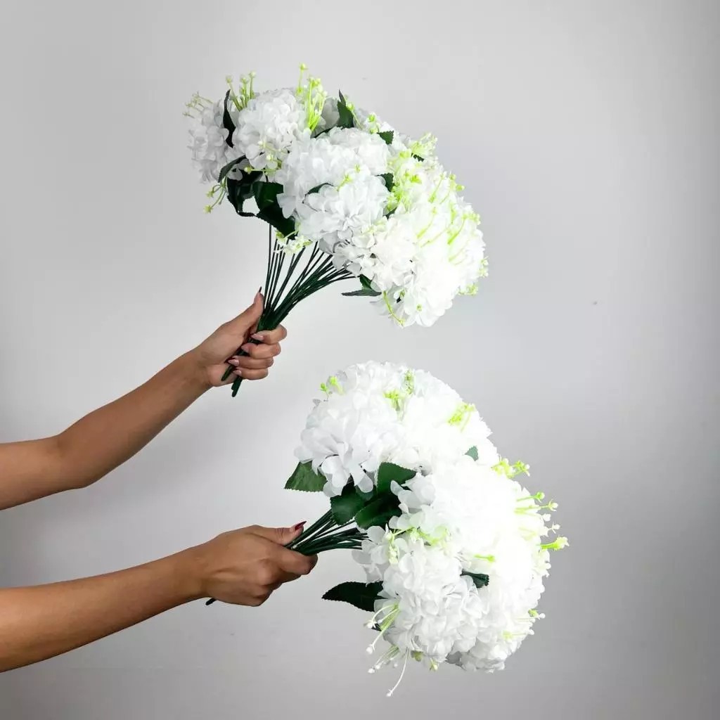 Buquê de hortênsia Pompom grande artificial com 9 flores - BY800578