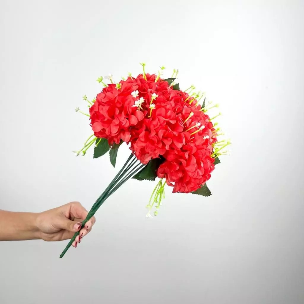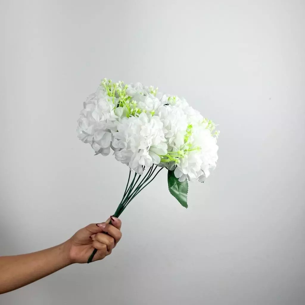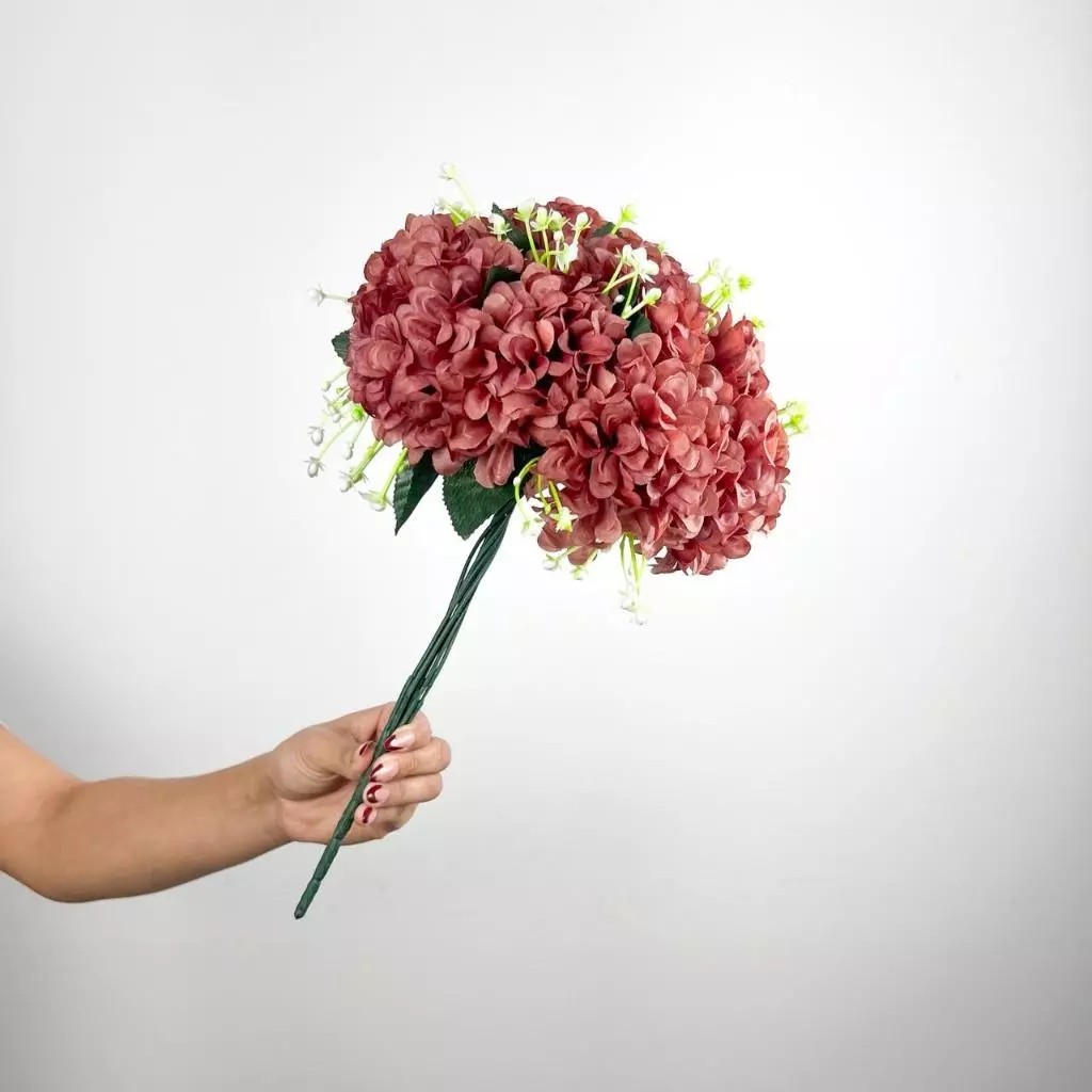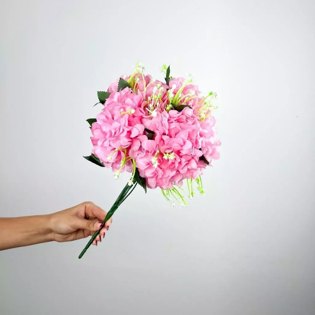 Buquê de hortênsia Pompom grande artificial com 9 flores - BY800578