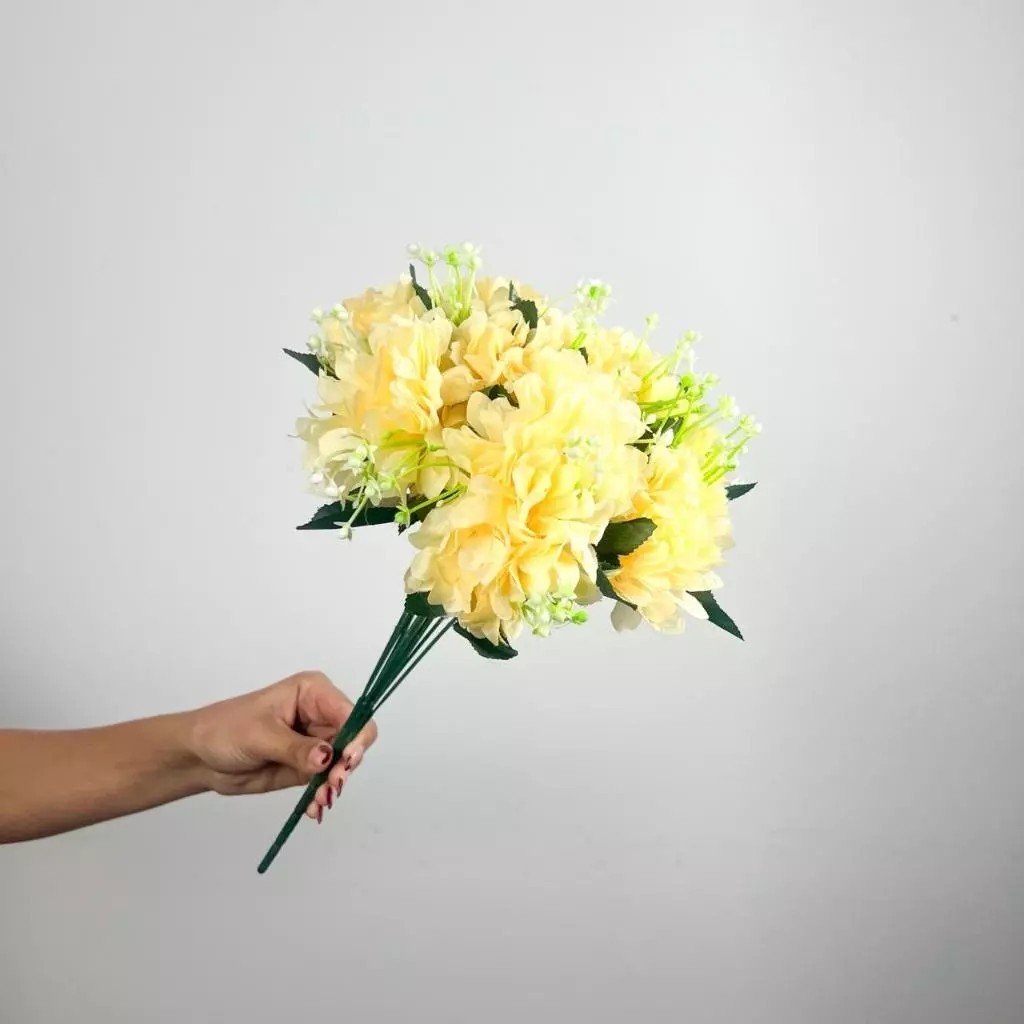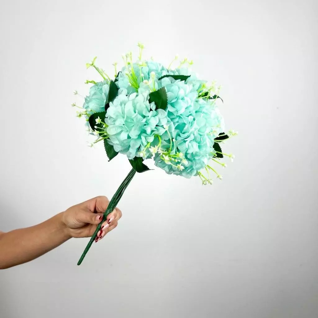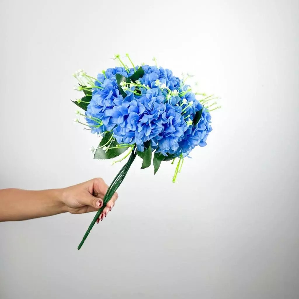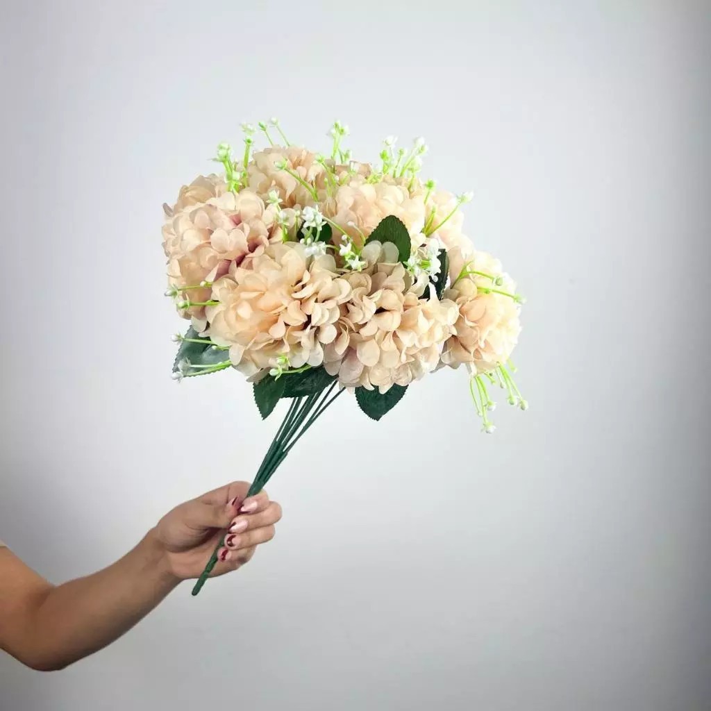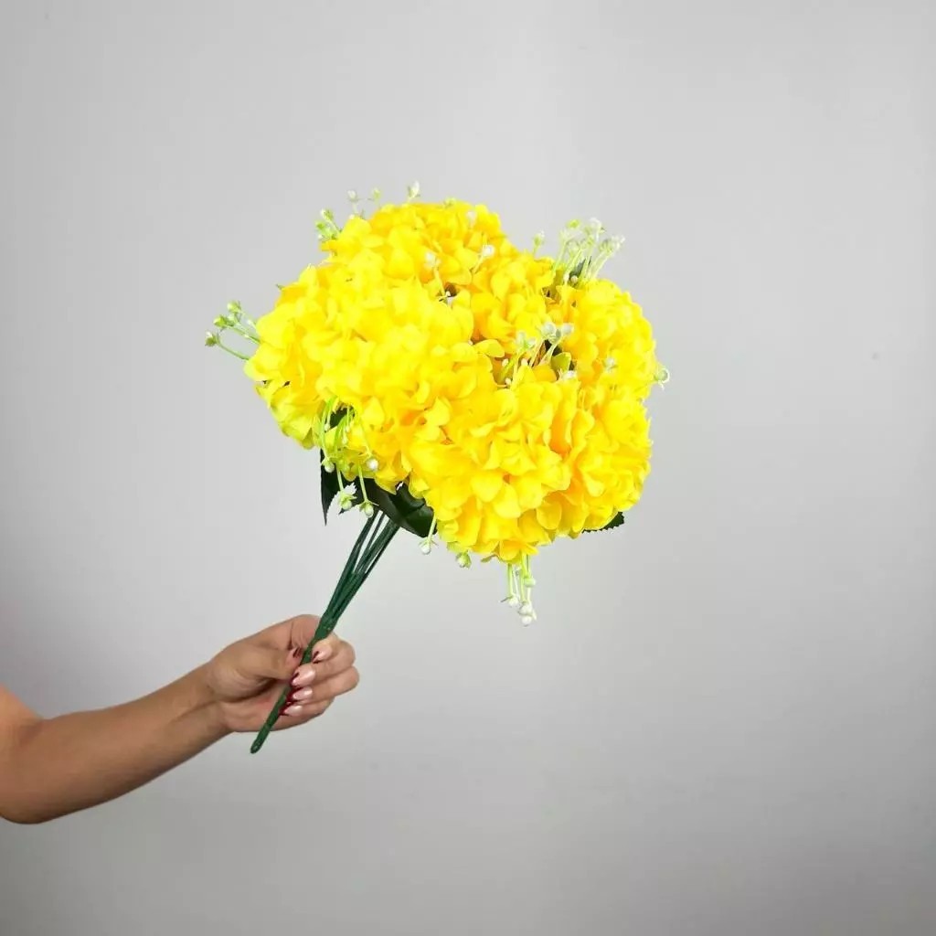 Buquê de hortênsia Pompom grande artificial com 9 flores - BY800578