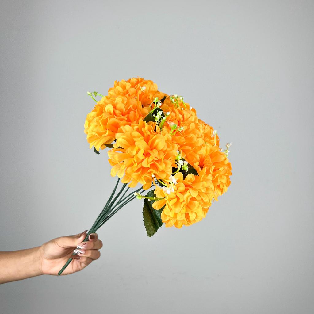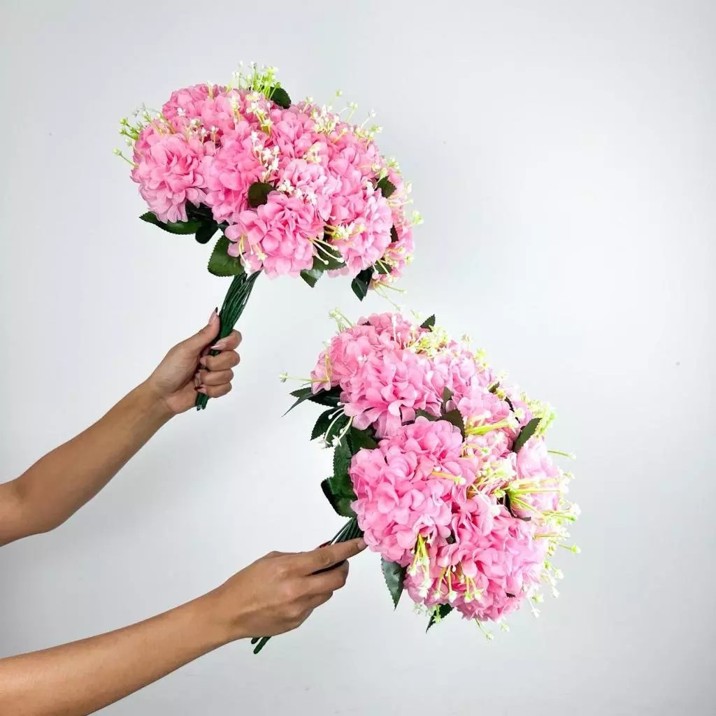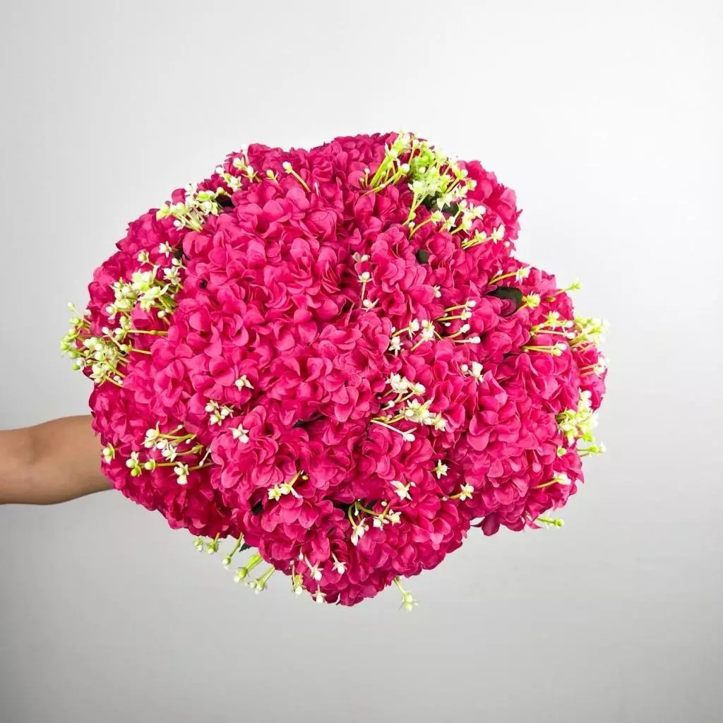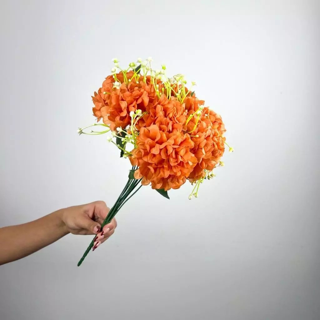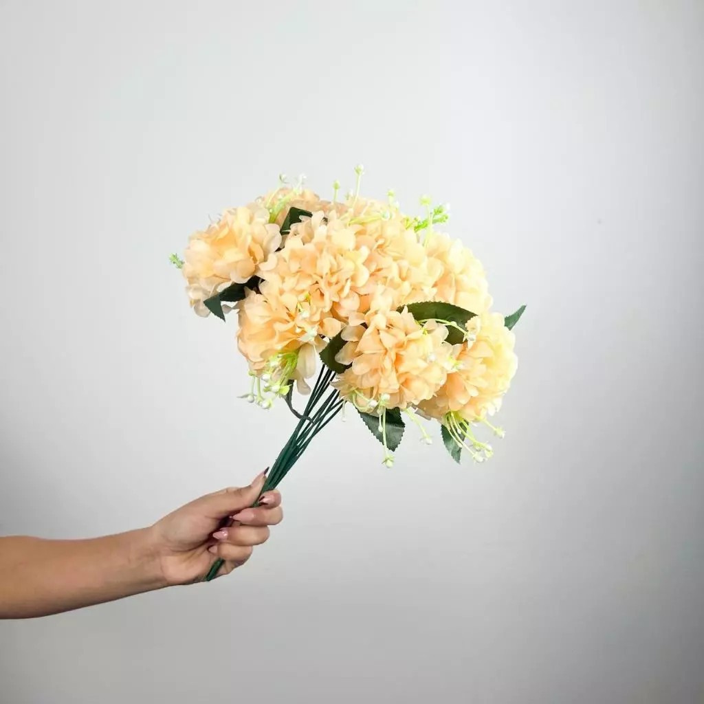 Buquê de hortênsia Pompom grande artificial com 9 flores - BY800578