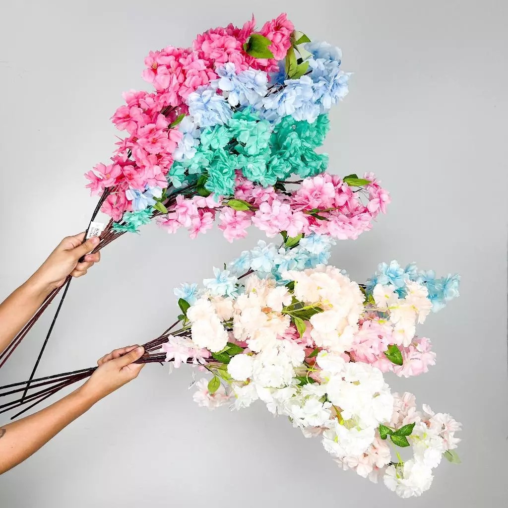 Haste de Cerejeira Artificial Alta Galho de Pessegueiro 95cm Decoração Flores Artificiais - BH802169