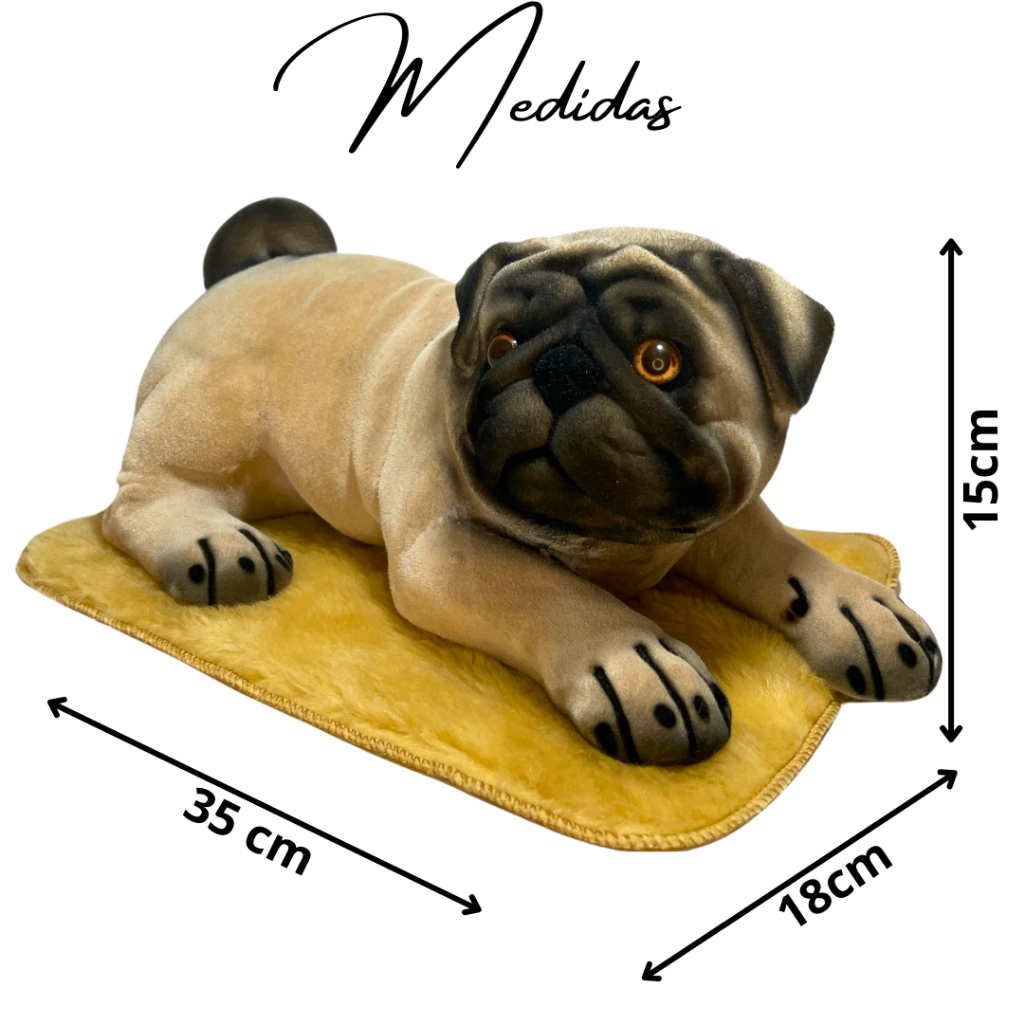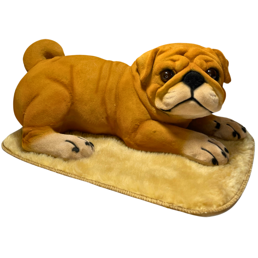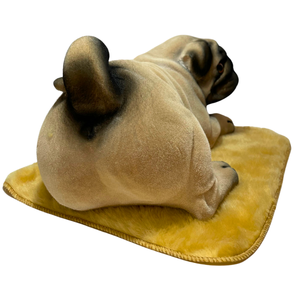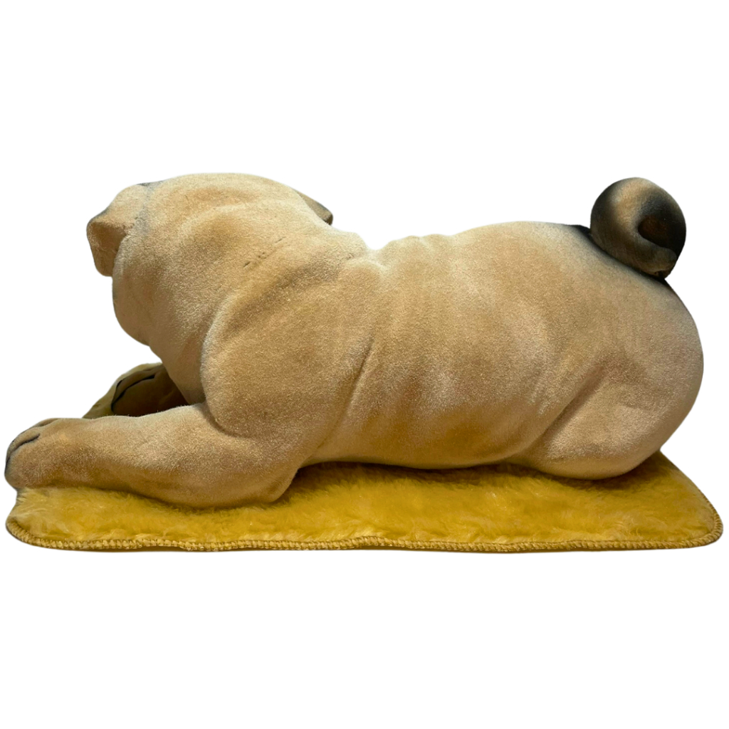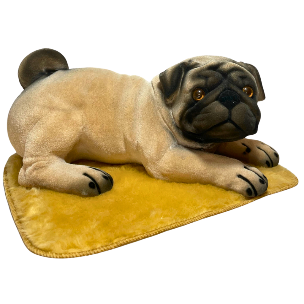 Estatua Pug Decorativo Super Realista Gesso Revestido de Camurça Beje Lindo Tapeta