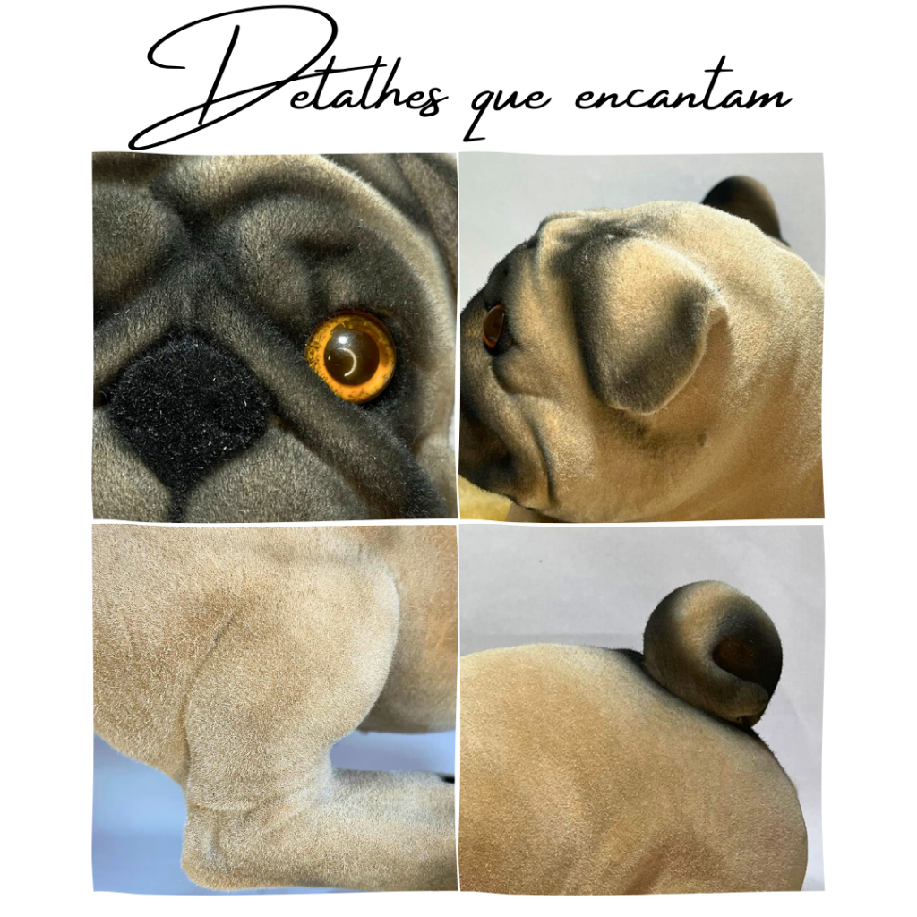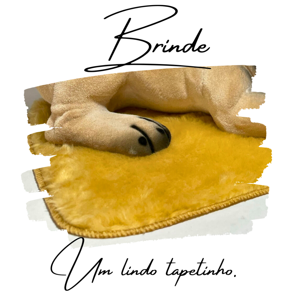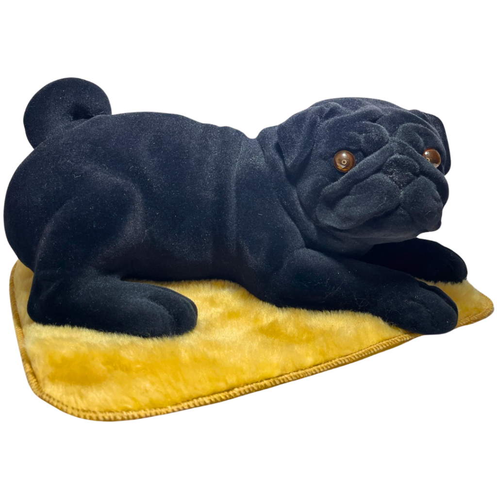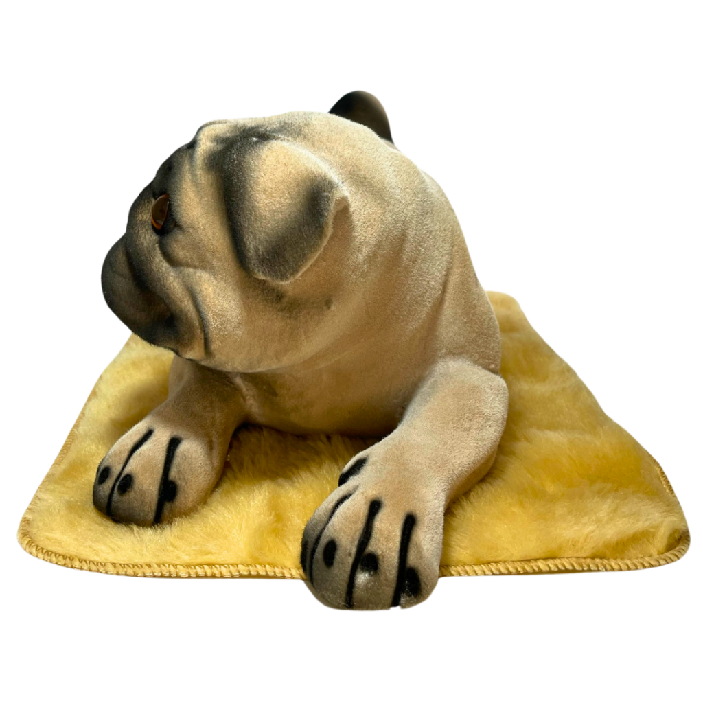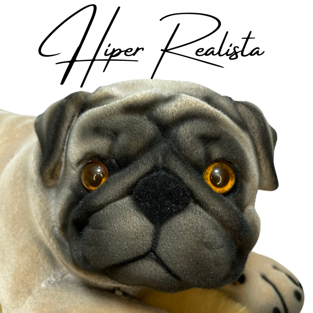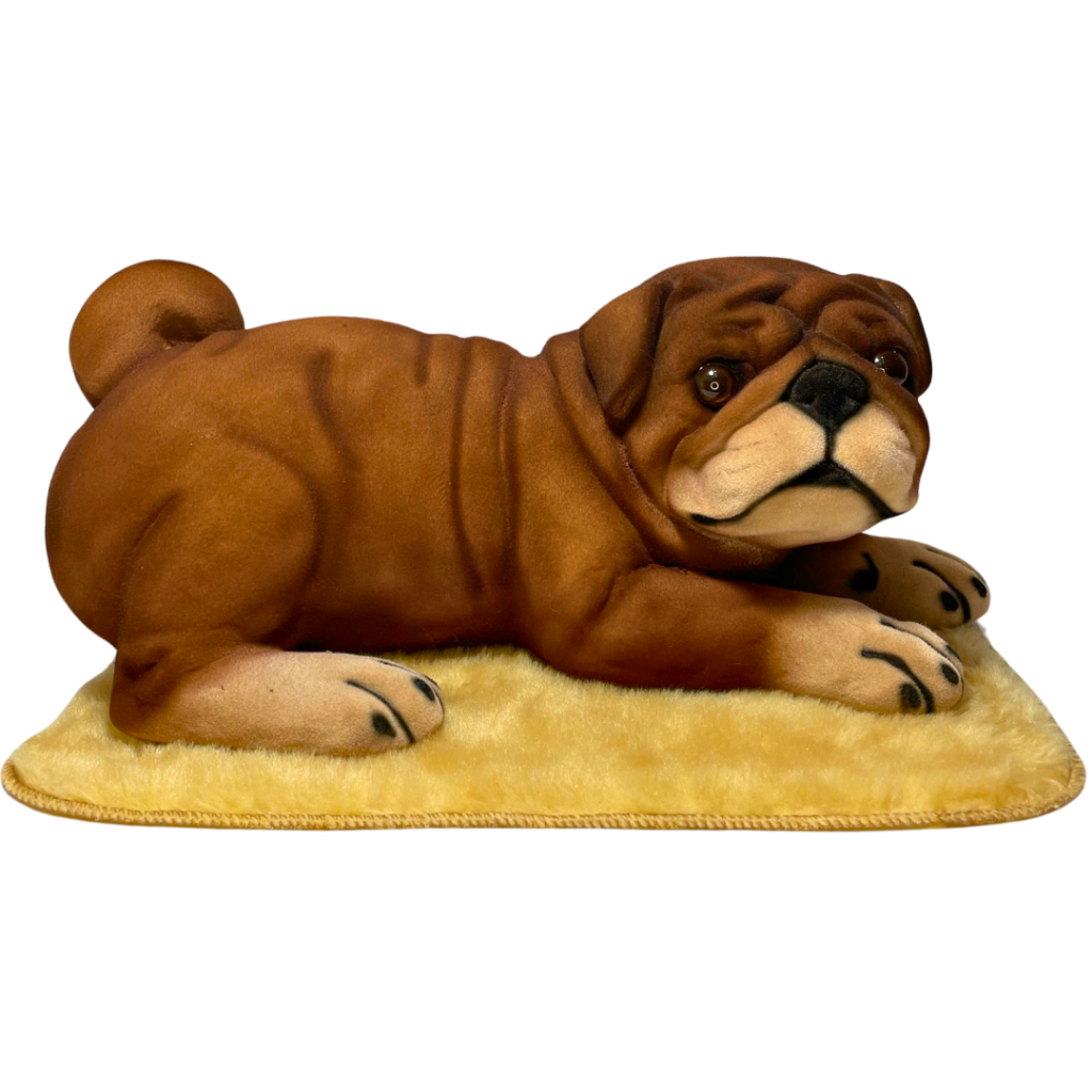 Estatua Pug Decorativo Super Realista Gesso Revestido de Camurça Beje Lindo Tapeta