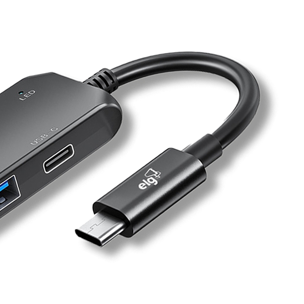 Adaptador Hub USB-C 3.0, Expansão com 4 Portas (USB-C + 3x USB-A), Transferência 5Gbps, HUB41C, ELG