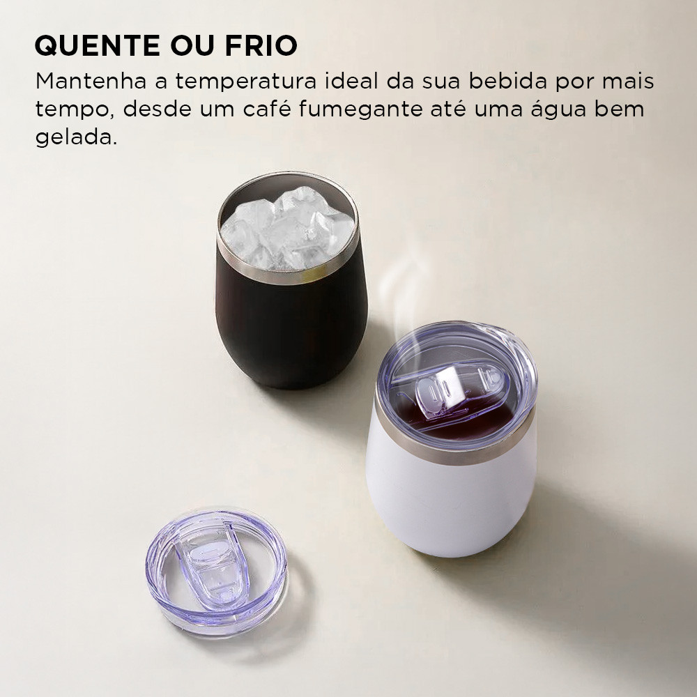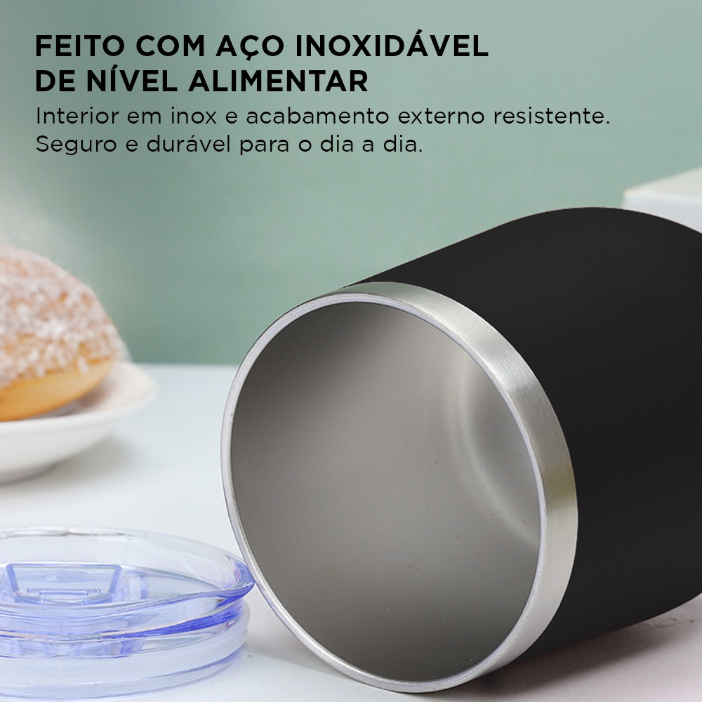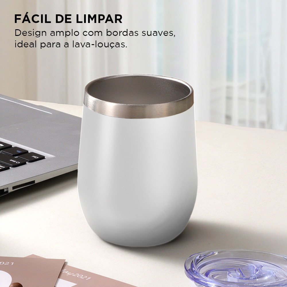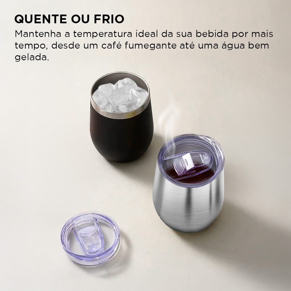 Copo Térmico Tipo Cuia Com Tampa, 350ml, Parede Dupla Inox, Café, Água, Cerveja, S3-CPTA