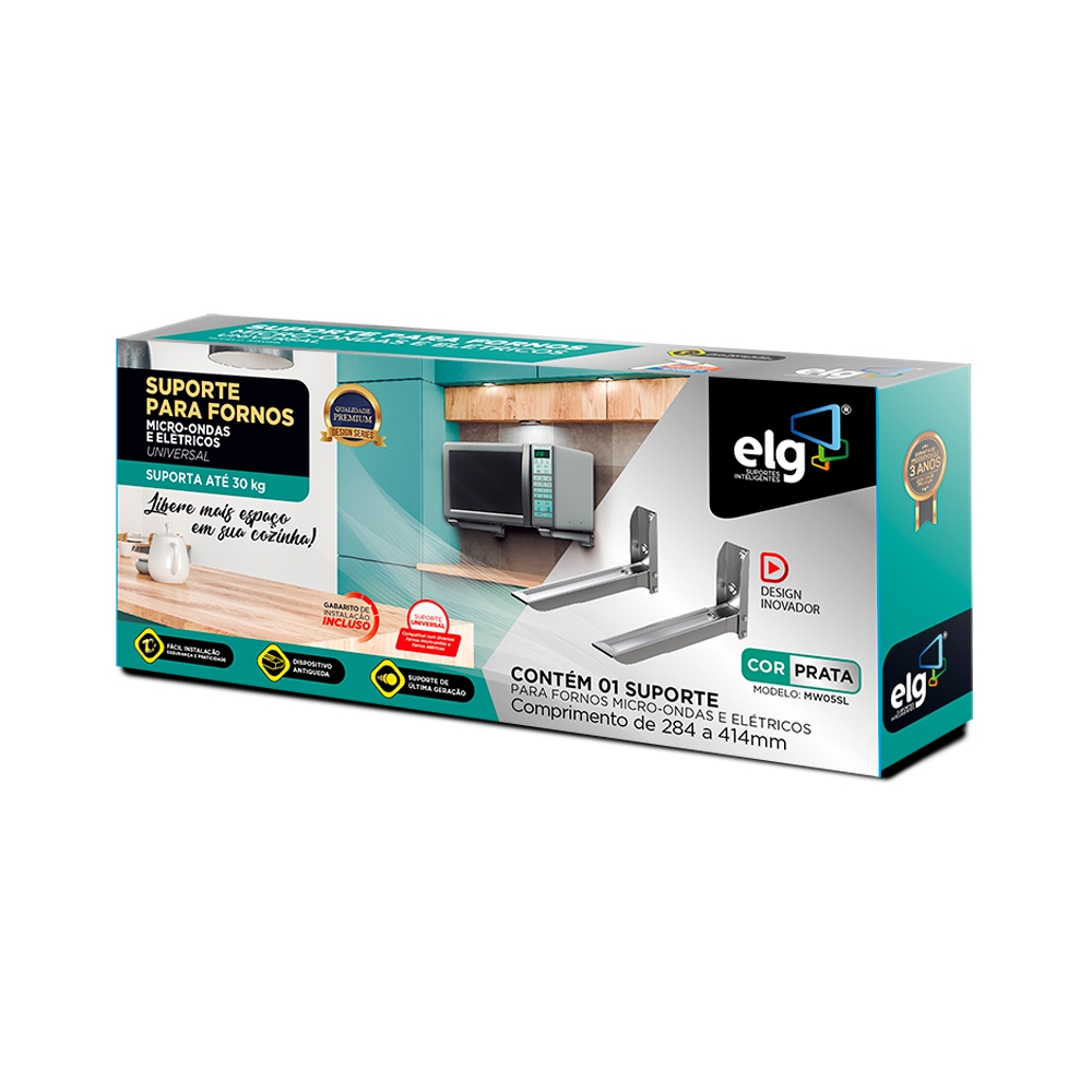 Suporte para Fornos e Micro-ondas, Ajustável 28,4 a 41,4 cm, Suporte Até 30 kg, Prata, MW05SL, ELG