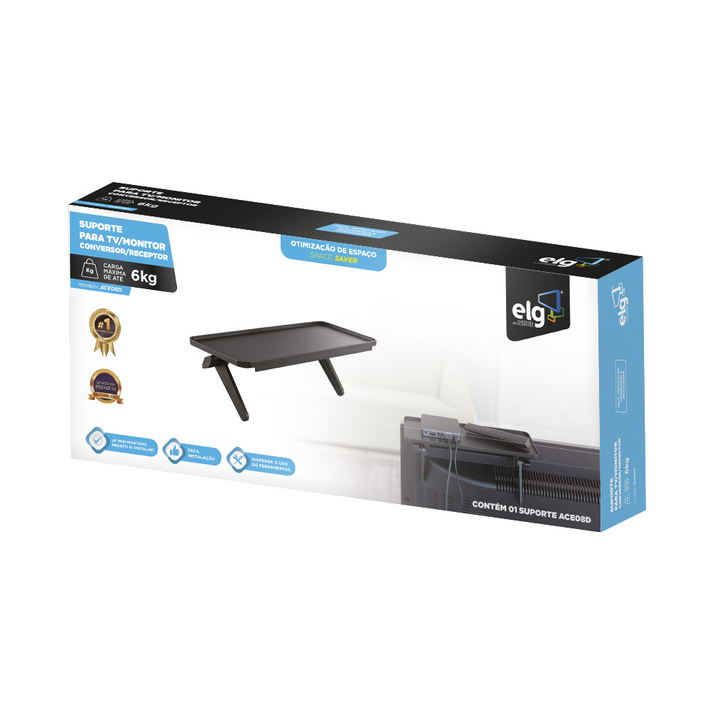 Suporte Tipo Prateleira para TV, Até 6kg, Para Conversor, Alexa, Caixa de Som, Preto, ACE08D, ELG