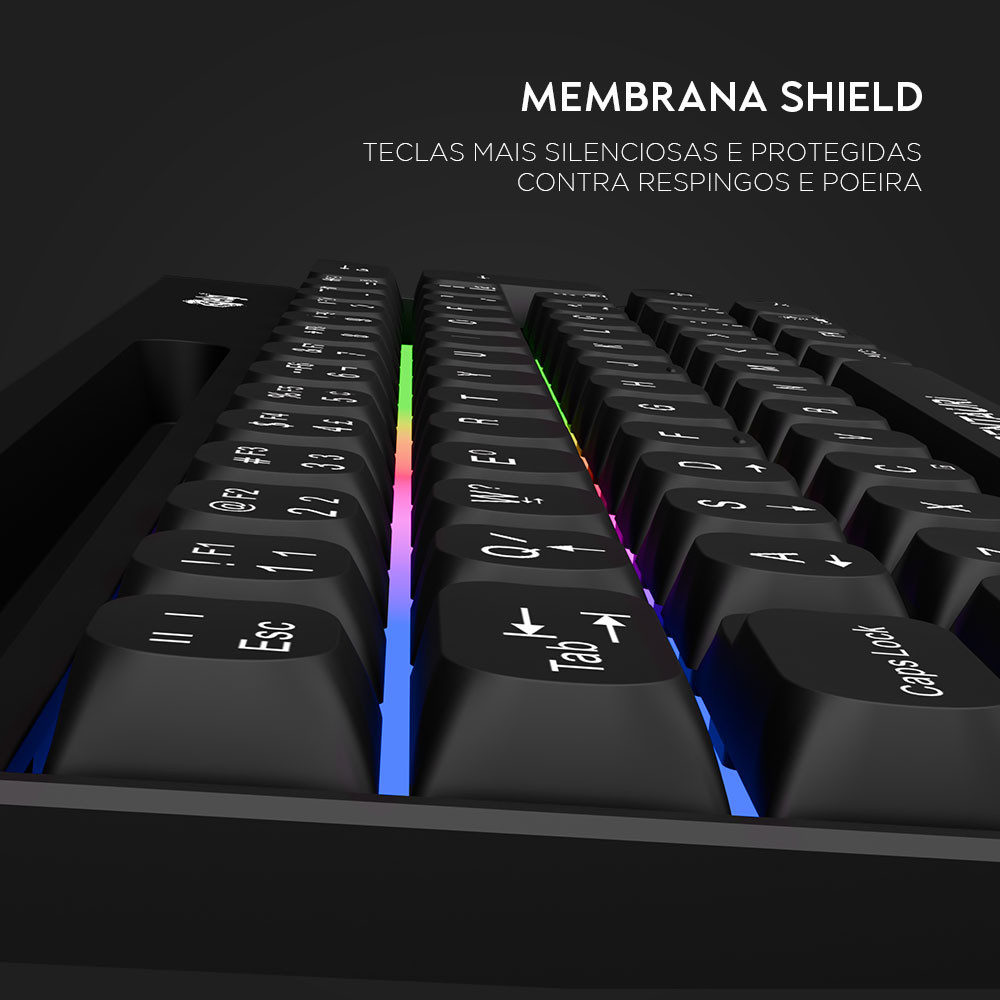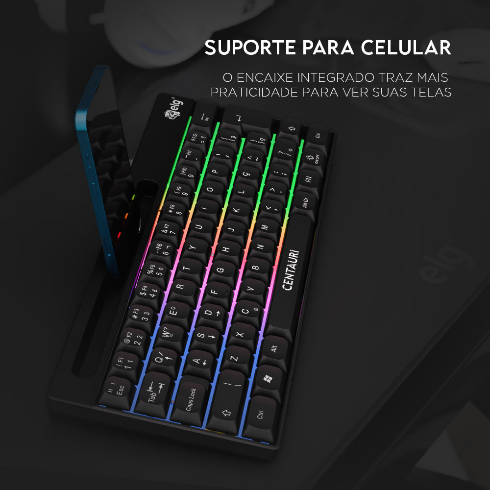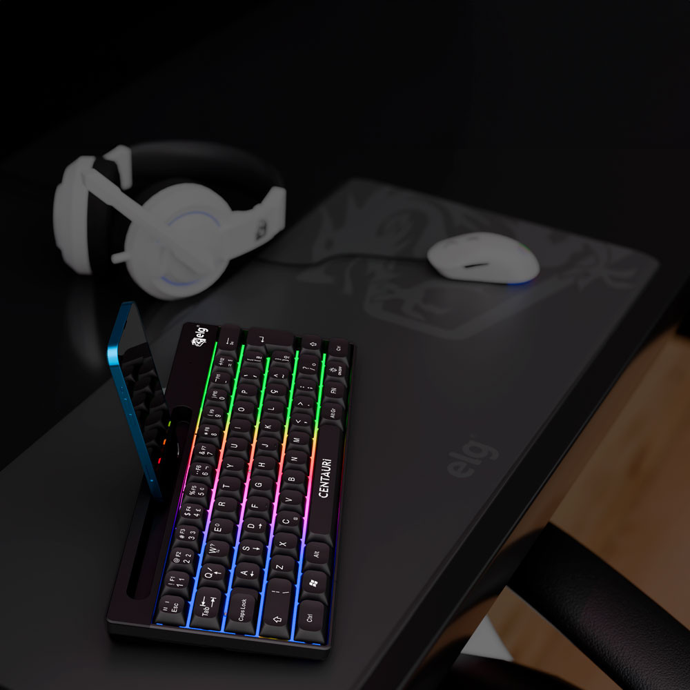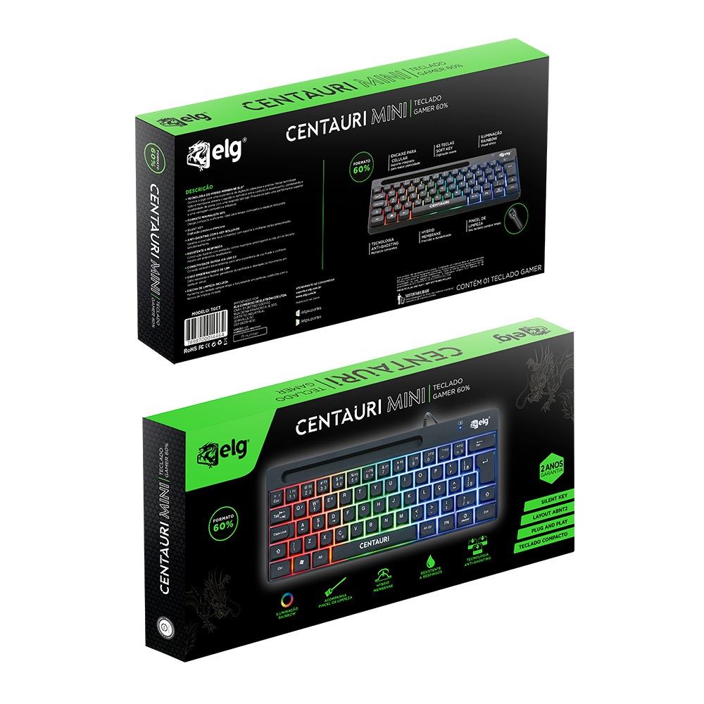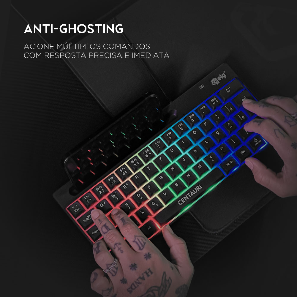 Teclado em Membrana Gamer Centauri, ELG, TGCT, 60%, ABNT, 67 Teclas, Anti-Ghosting, RGB, USB, Preto