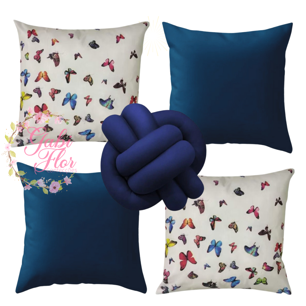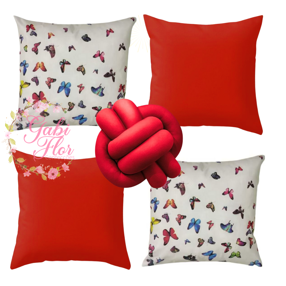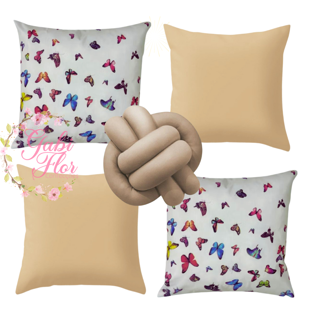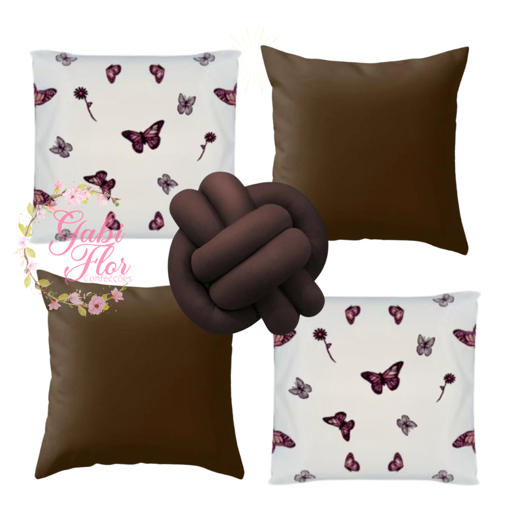 Kit Luxo 4 Capas 45x45 cm Borboleta Coração + 1 Nó Decoração Casa Linda