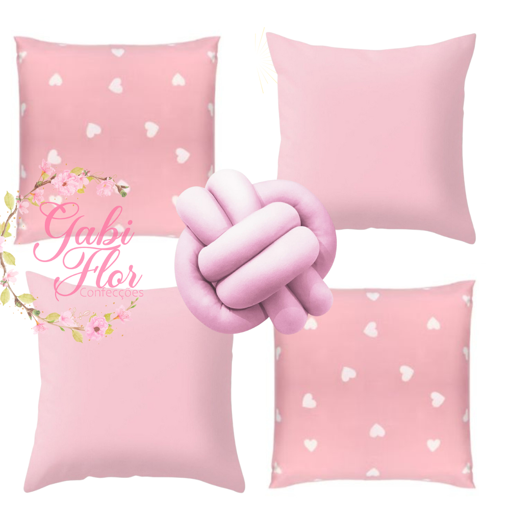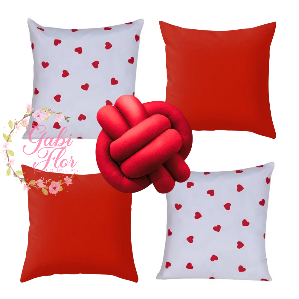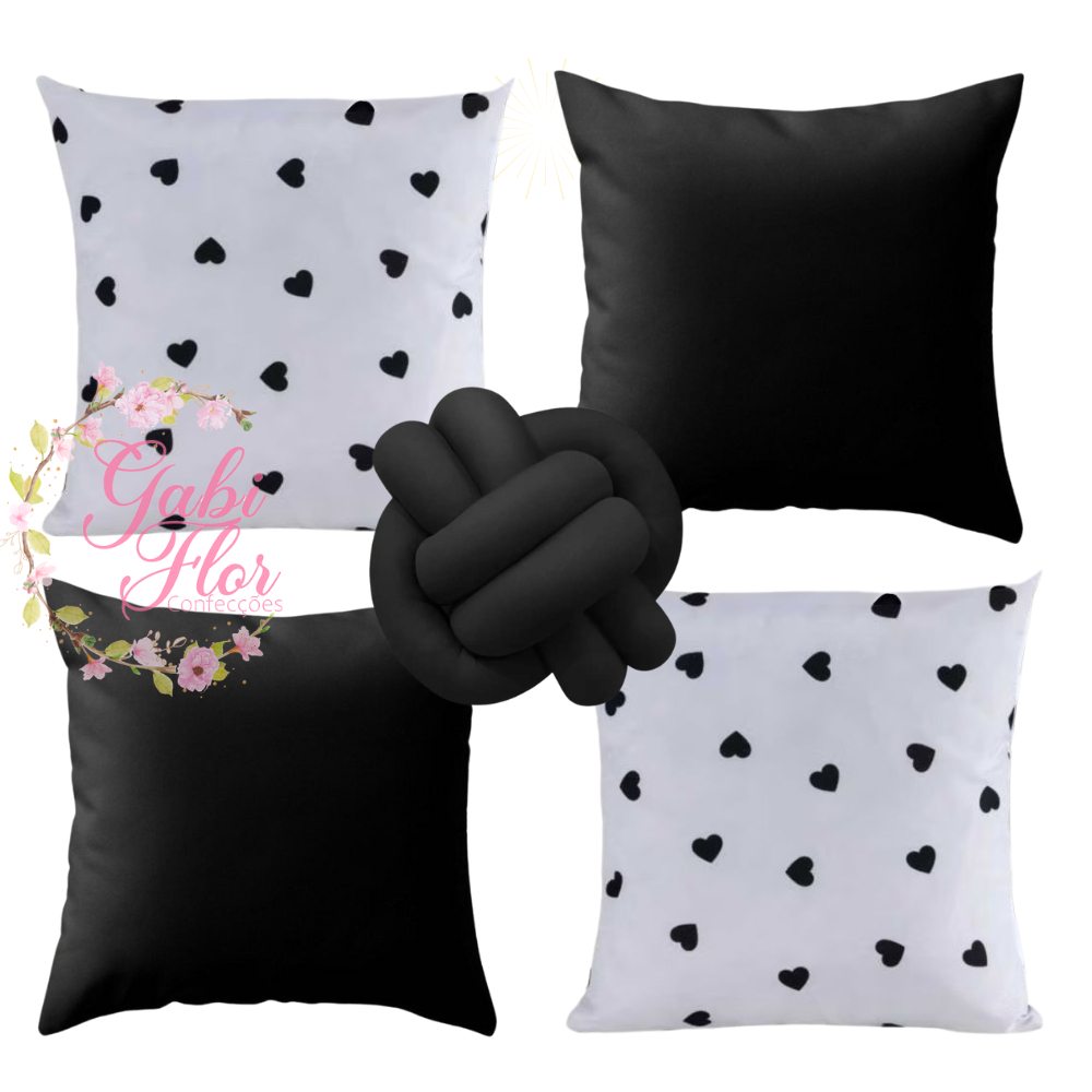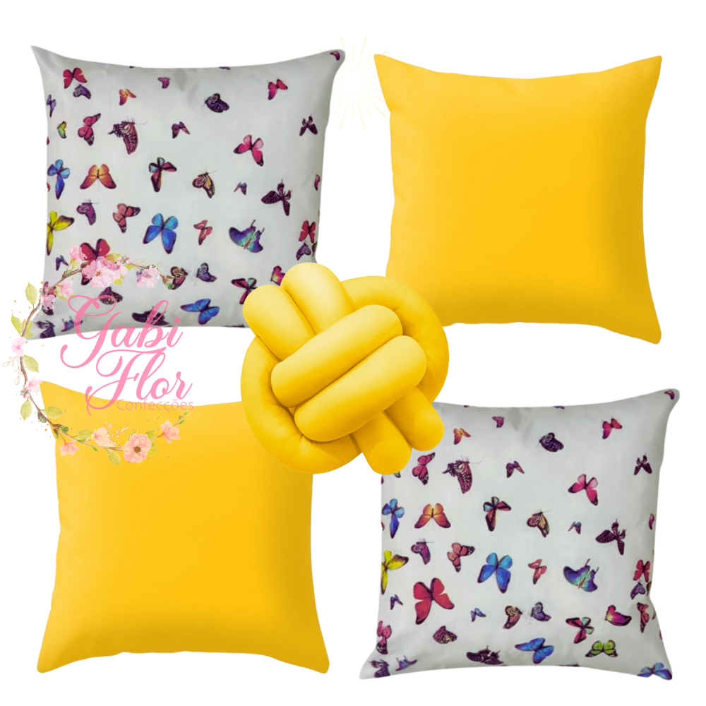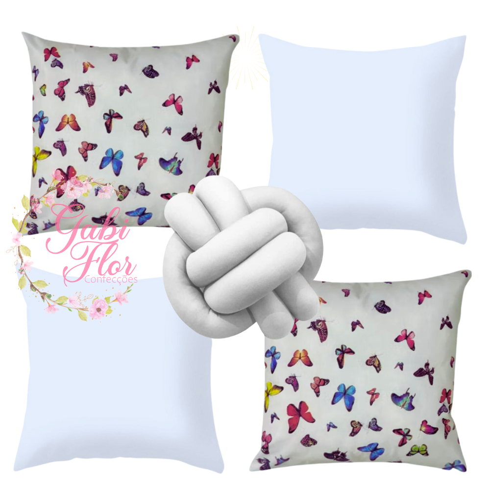 Kit Luxo 4 Capas 45x45 cm Borboleta Coração + 1 Nó Decoração Casa Linda