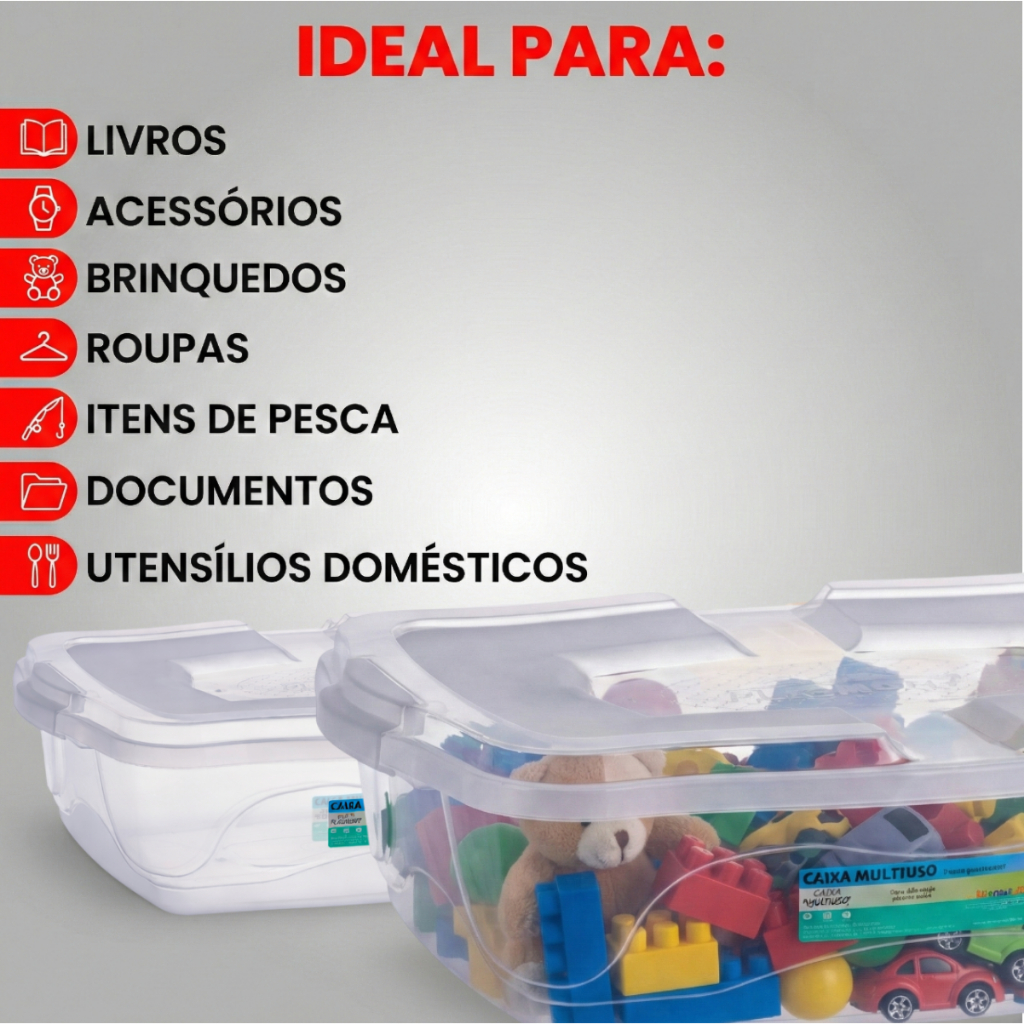Jogo de 2 Caixas Organizadoras 17 Litros Transparente Reforçadas