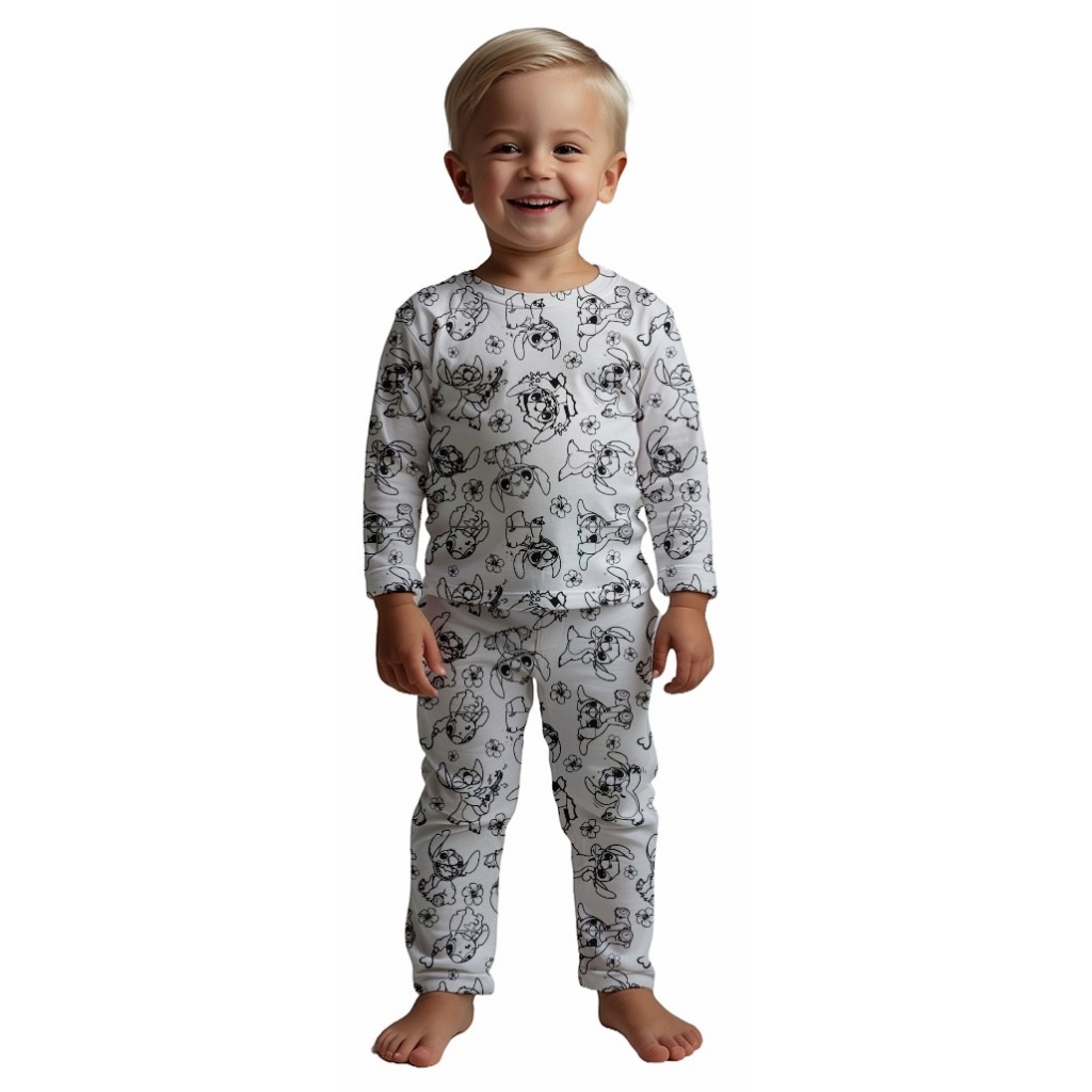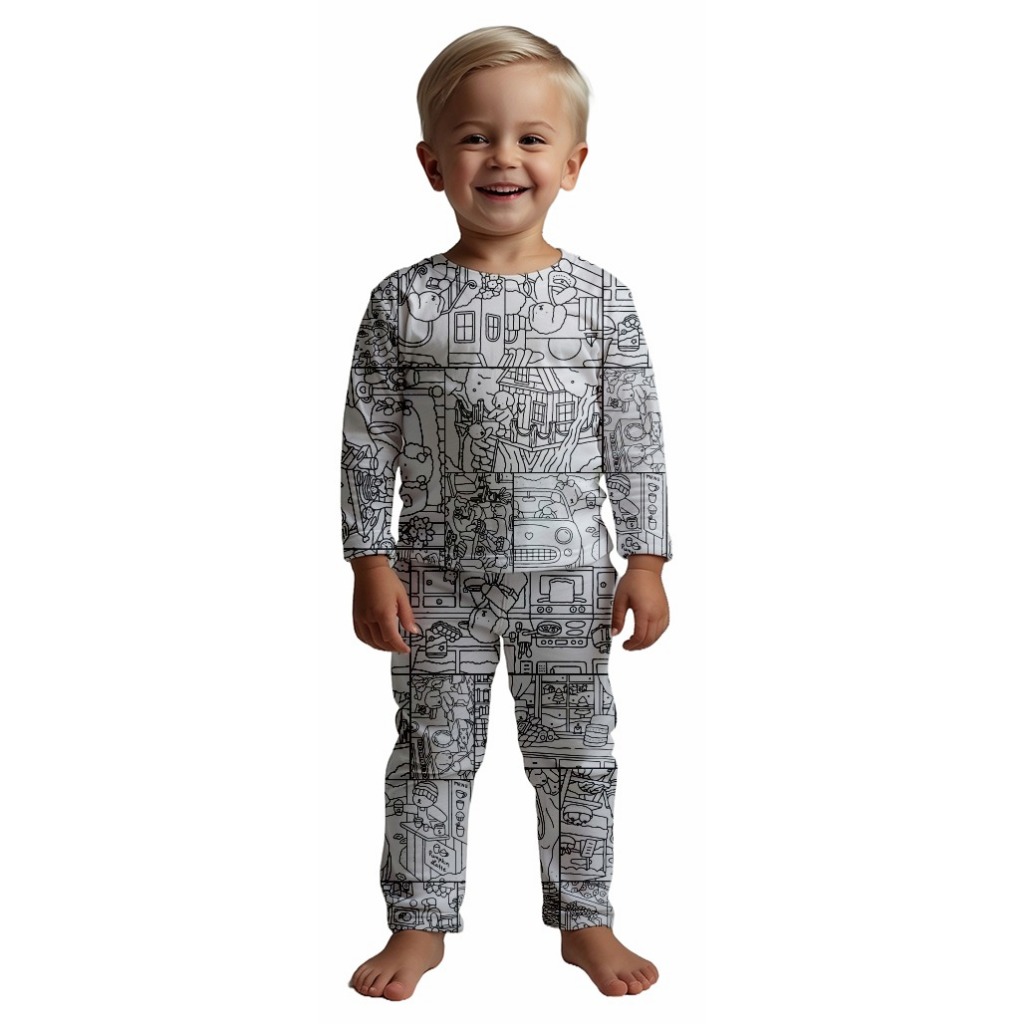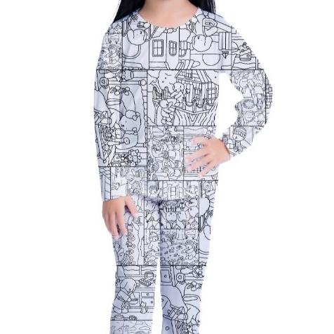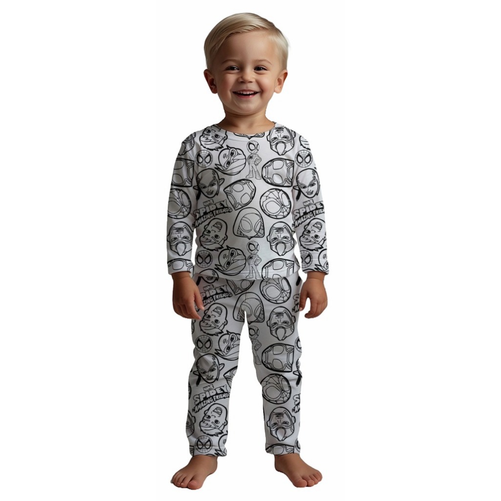 PIJAMA INFANTIL MANGA LONGA COM CANETINHA LAVÁVEL KIT PARA COLORIR DIVERTIDO ESTAMPADO PERSONAGENS