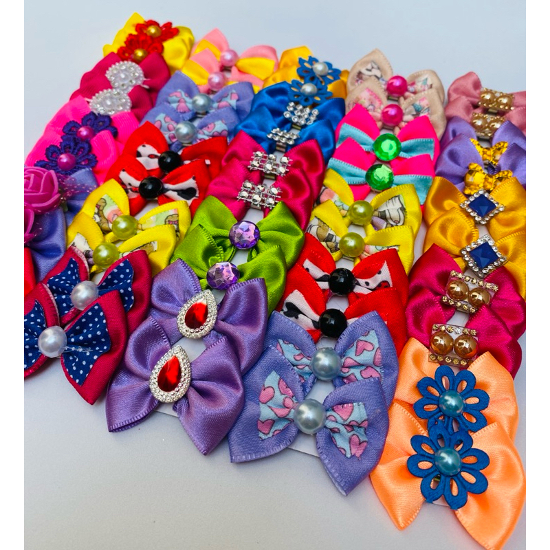 50 unidades lacinhos para pet cores variadas cachorro, caes laço banho e tosa