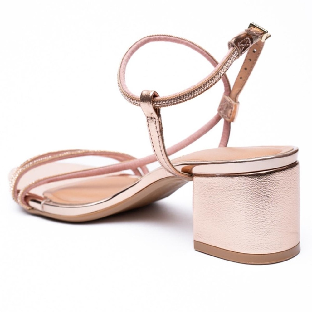 Sandália Vizzano Tiras Strass Metalizada Salto Bloco Feminina - Ouro Rosado