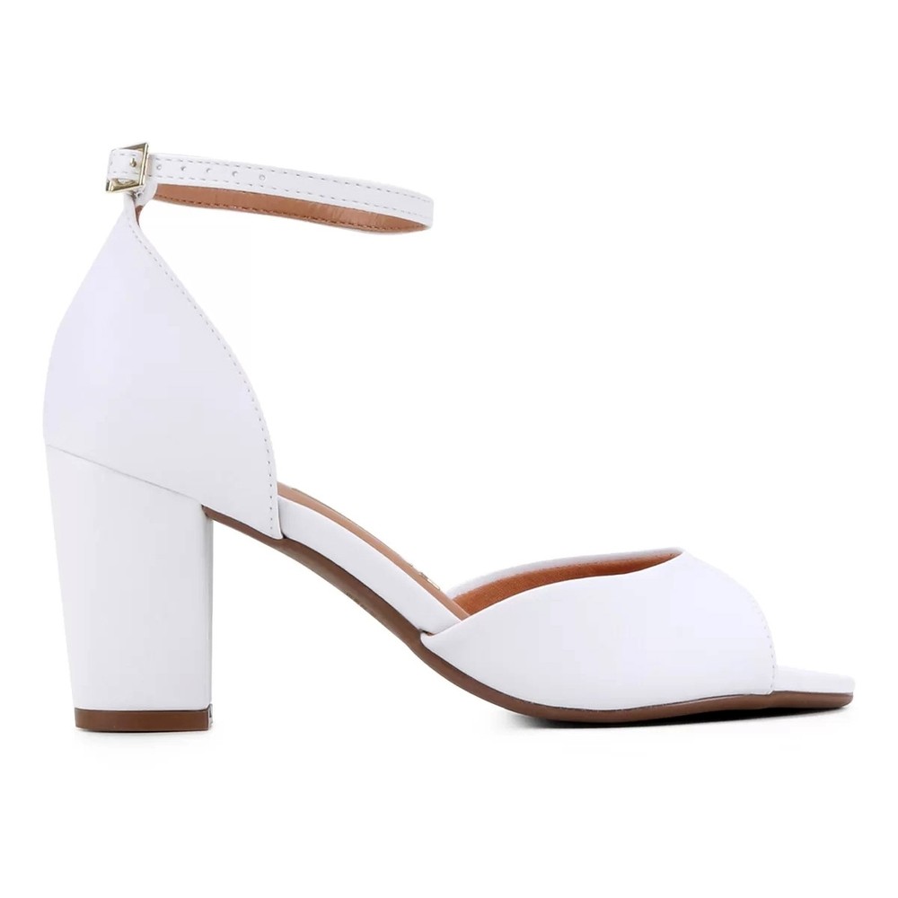 Sandália Vizzano Salto Grosso Médio Traseira Fechada Feminina - Branco