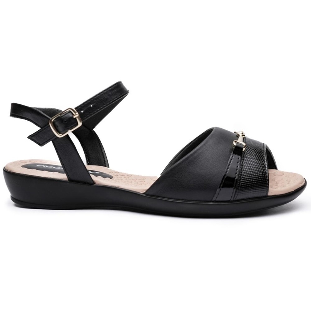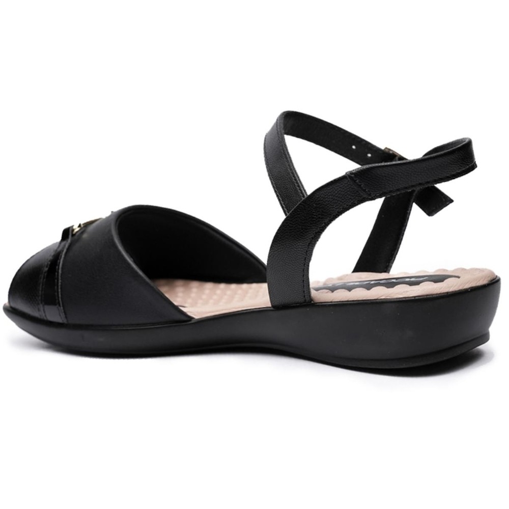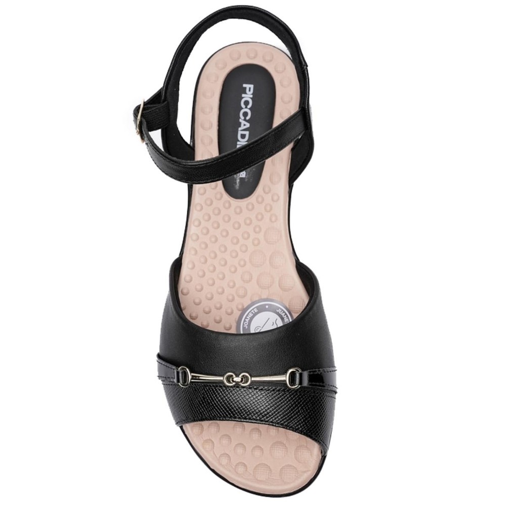 Sandália Piccadilly Conforto Detalhe Feminina - Preto e Bege
