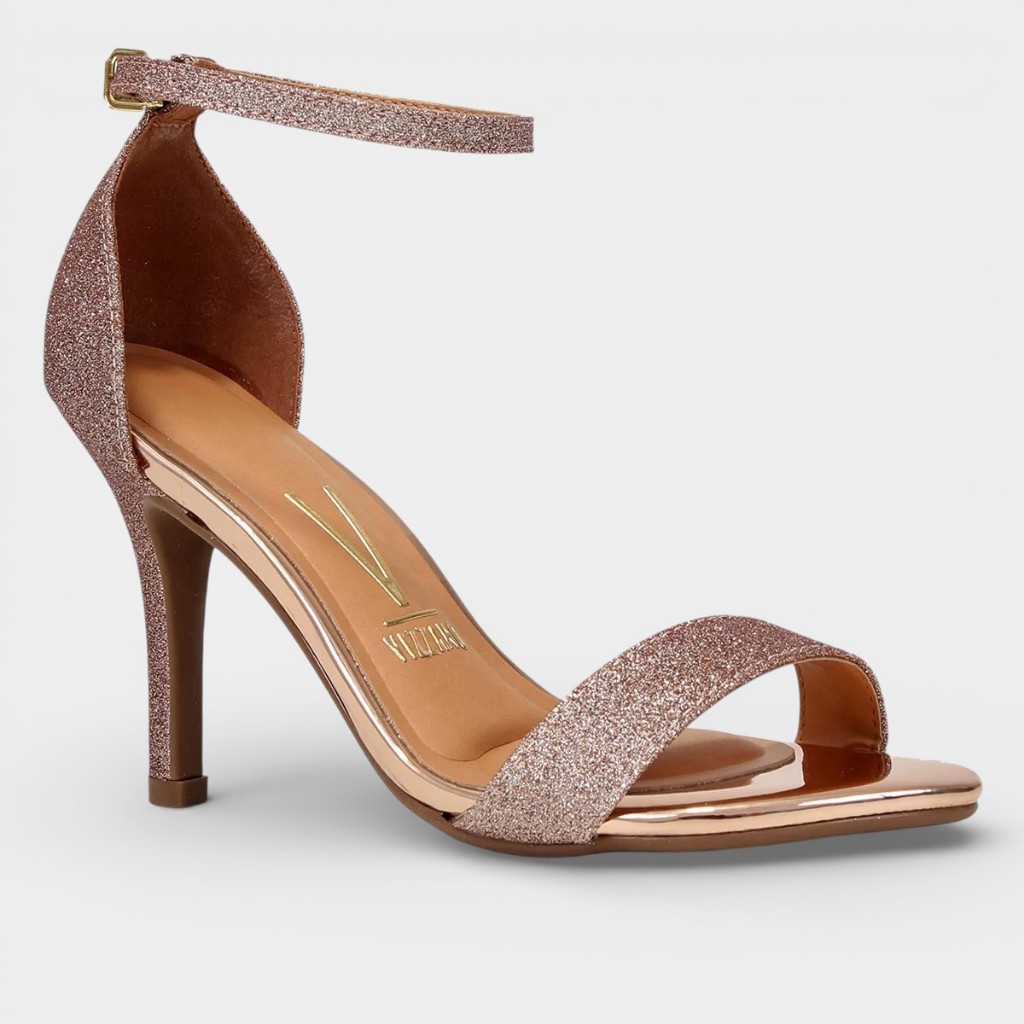 Sandália Vizzano Salto Fino Alto Brilho Metalizado Glitter Feminina Original Festa Moda