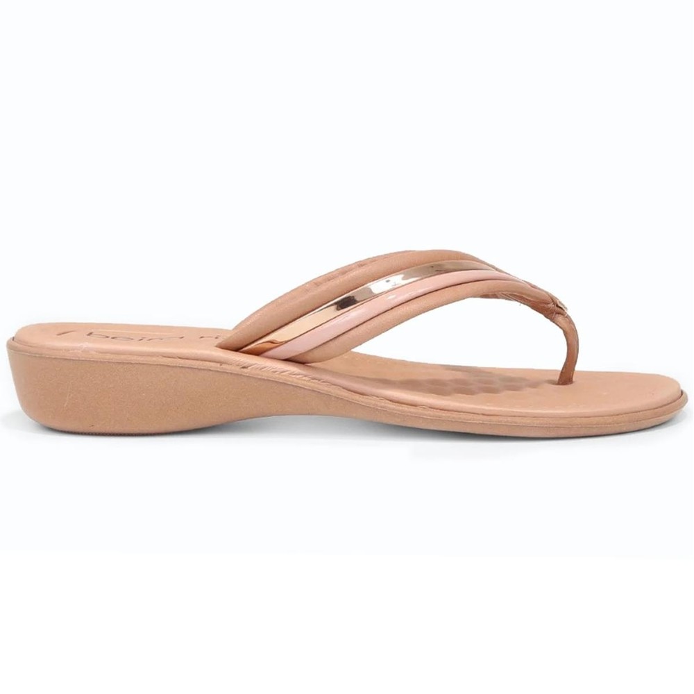 Chinelo Beira Rio Salto Baixo Feminino - Bege