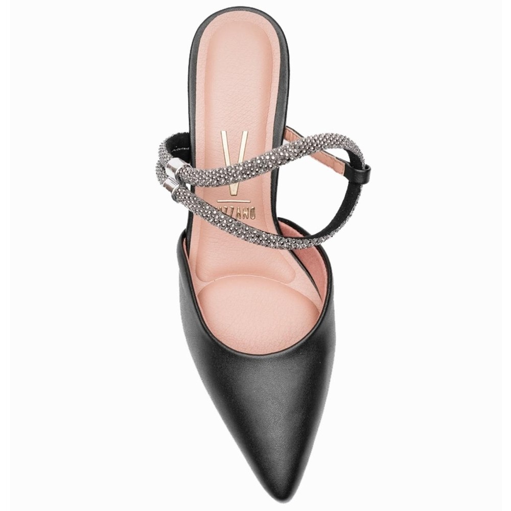 Scarpin Vizzano Traseiro Aberto Tira Strass Salto Médio