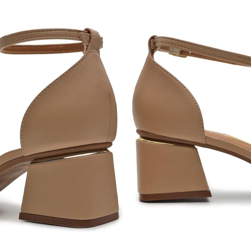 Sandália Vizzano Salto Bloco Detalhe Dourado - Bege