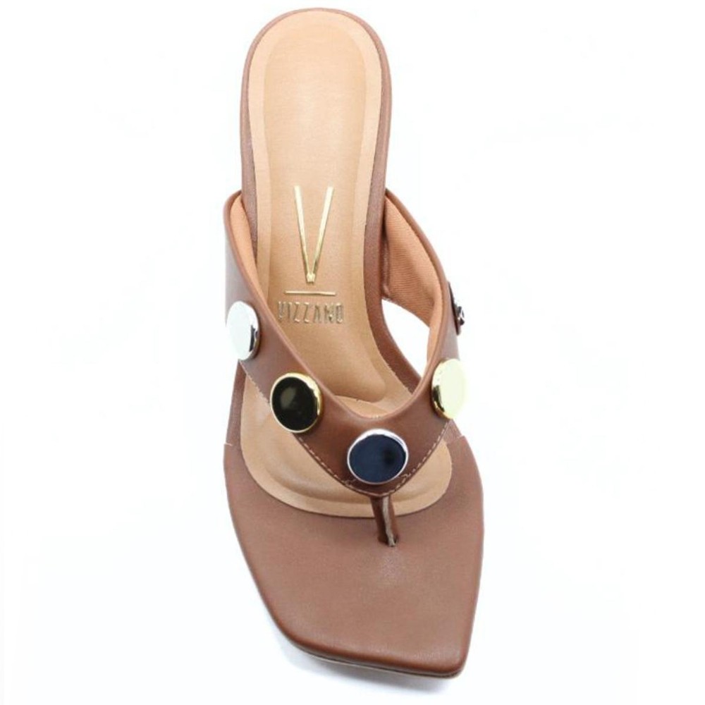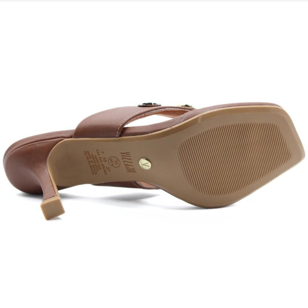 Tamanco Vizzano Salto Baixo Detalhes Feminino - Marrom