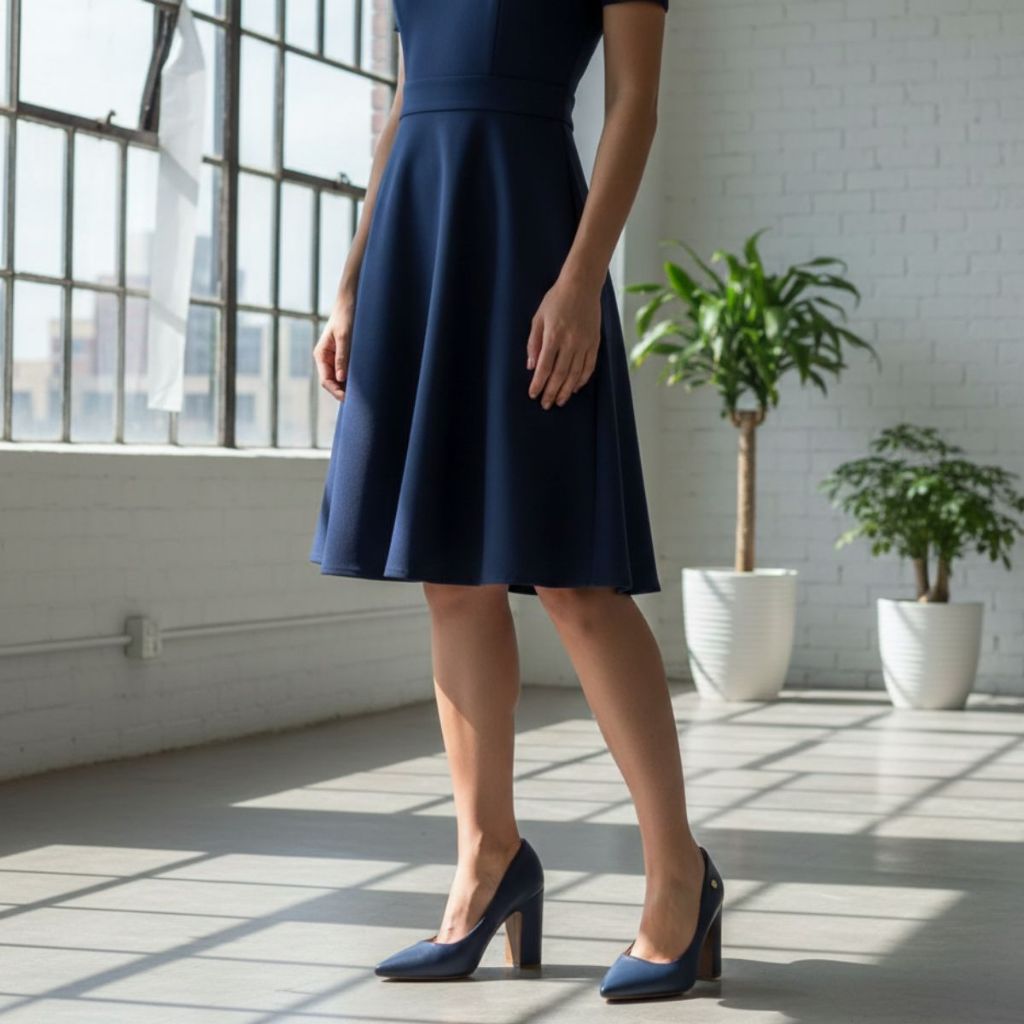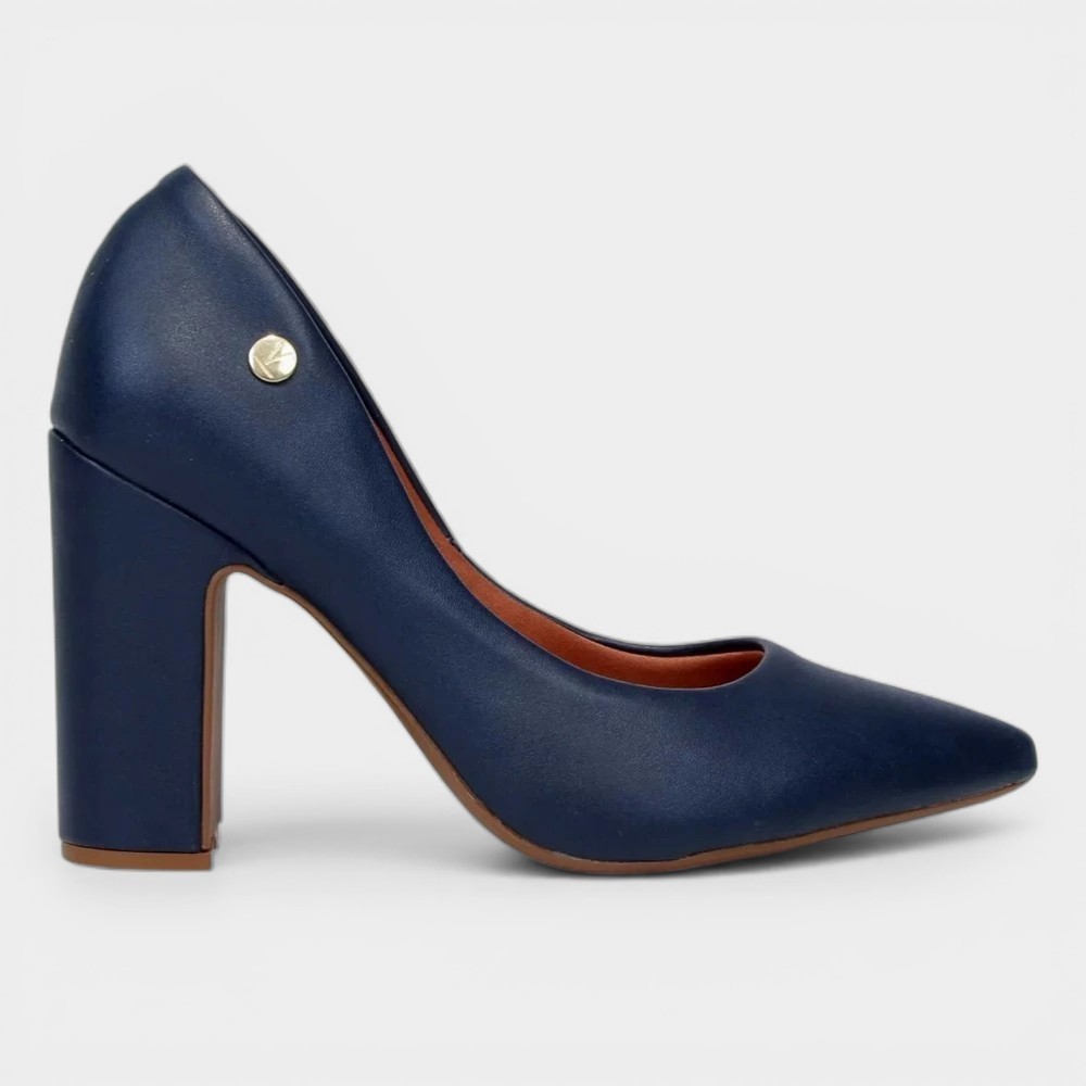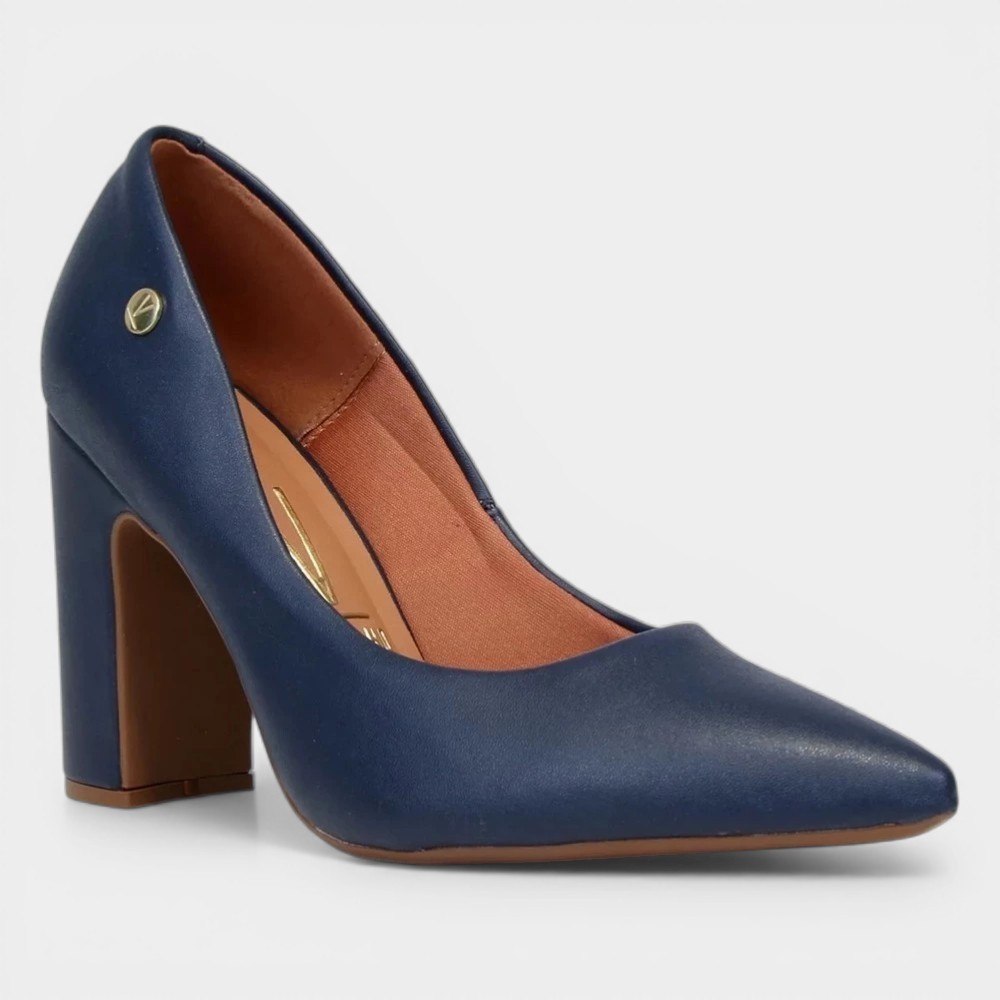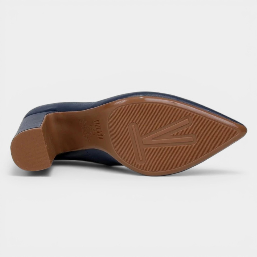 Scarpin Vizzano Bico Fino Salto Bloco Alto - Marinho