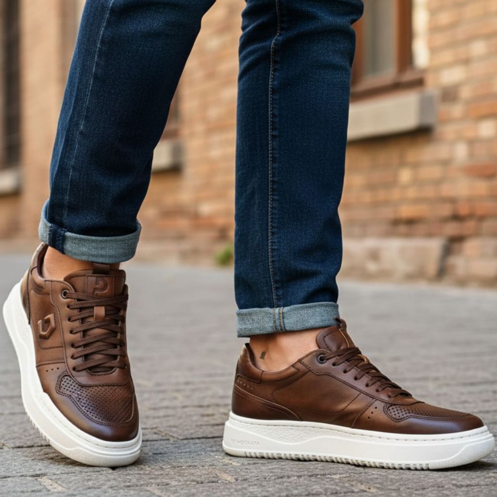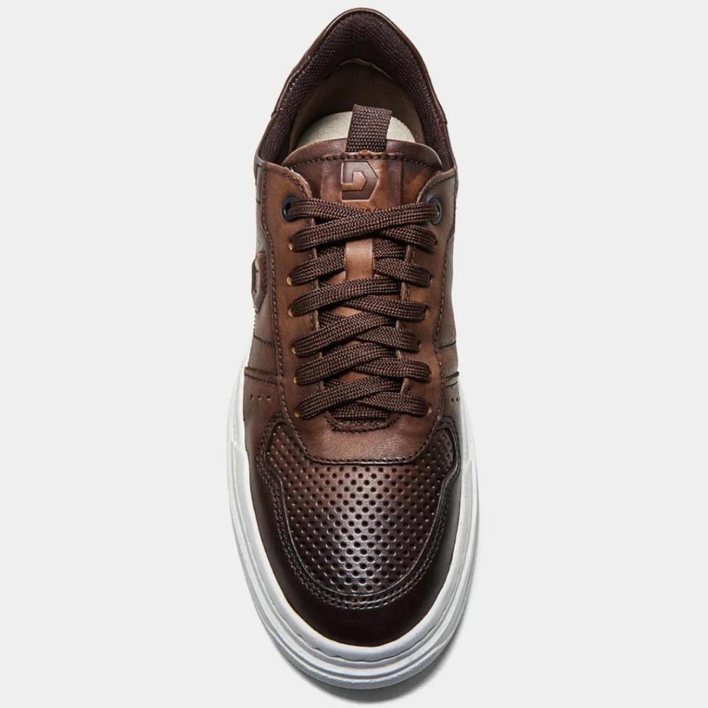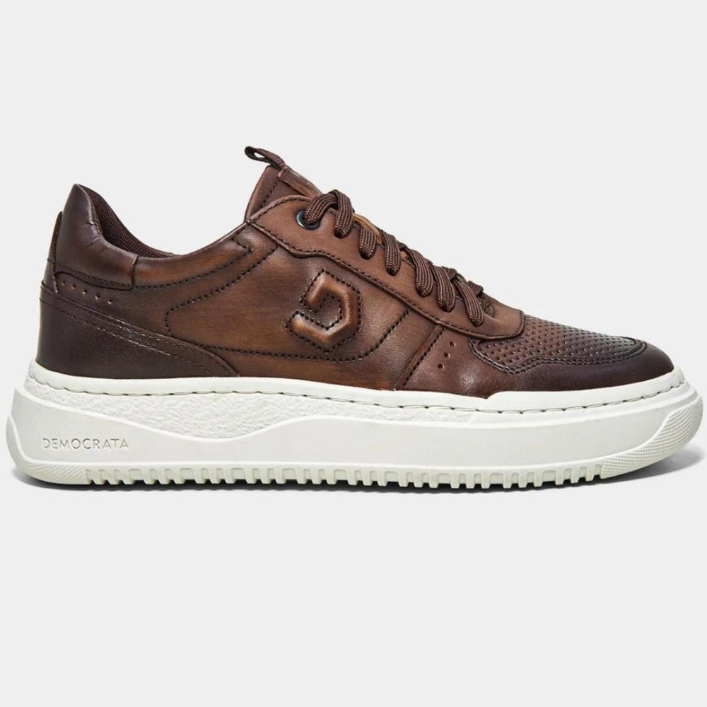 Tênis Couro Democrata Denim Block Masculino - Marrom Escuro
