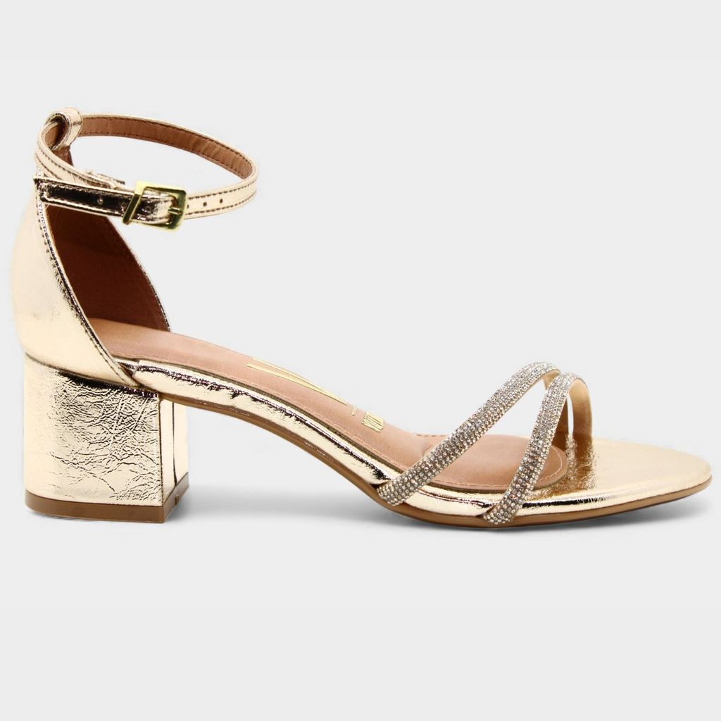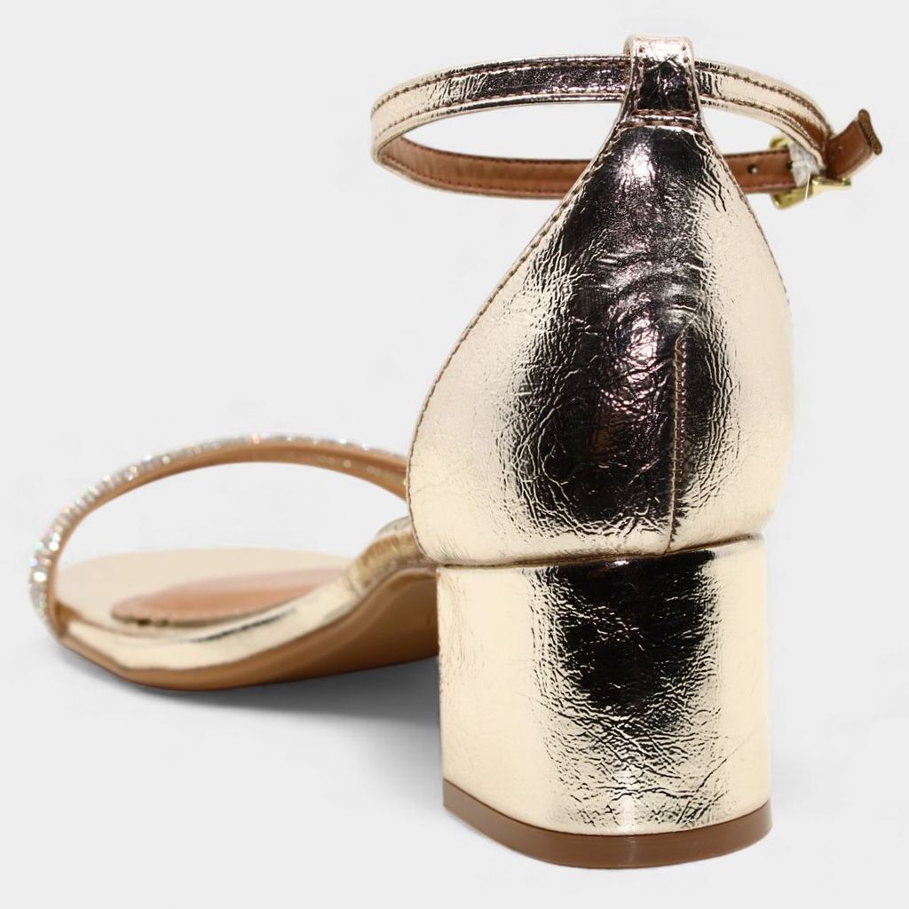 Sandália Vizzano Salto Bloco Strass Metalizada Feminina - Dourado