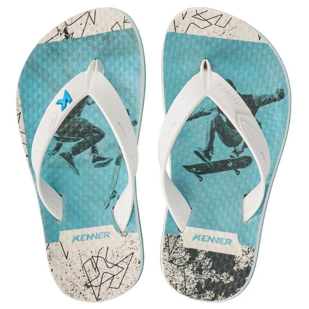 Chinelo Infantil Kenner Summer SK8 Kids - Branco e Azul