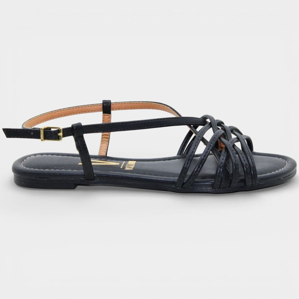 Rasteira Vizzano Tiras Cruzadas Feminina - Preto